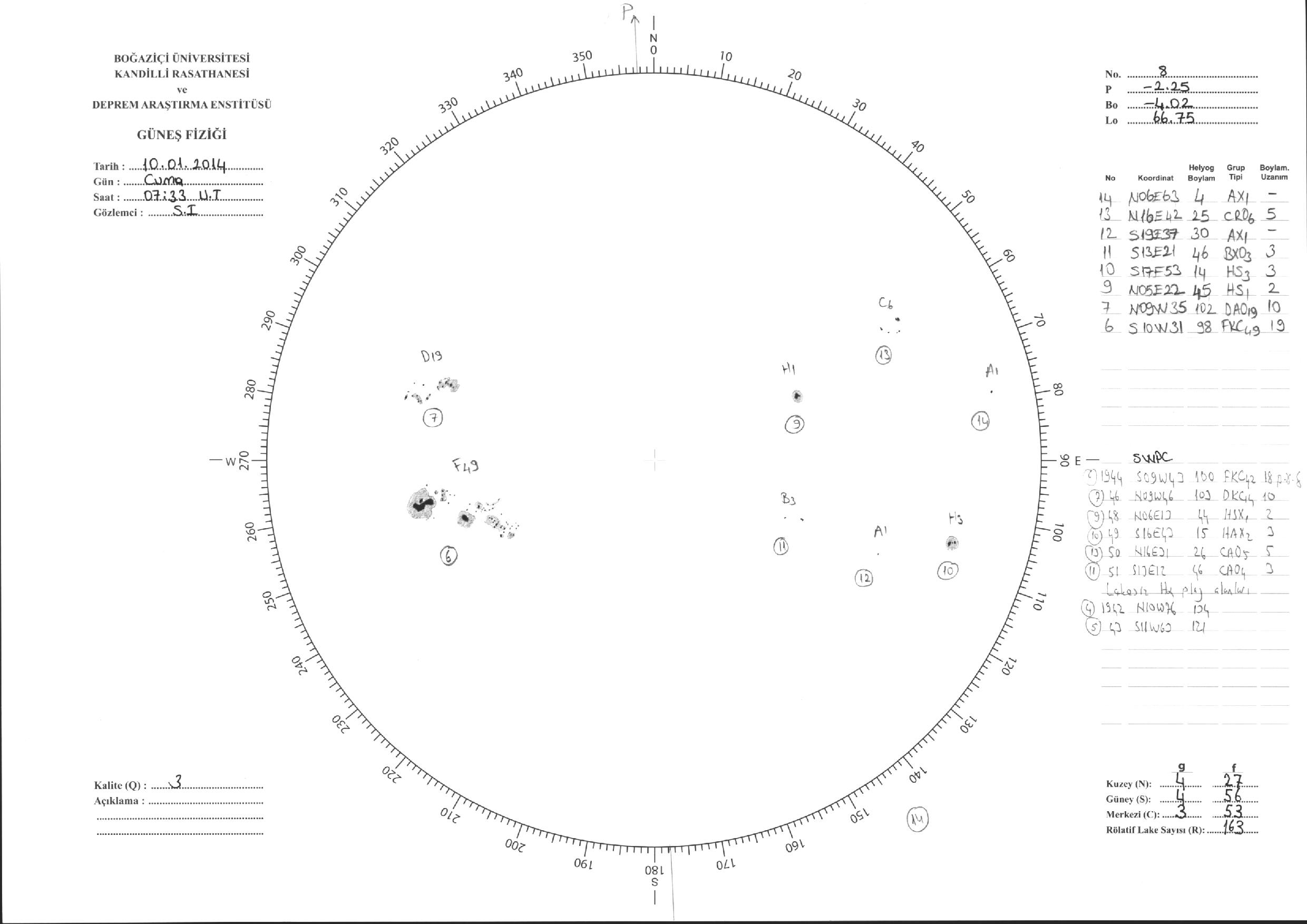 Güneş Lekesi Çizimi - 10.01.2014