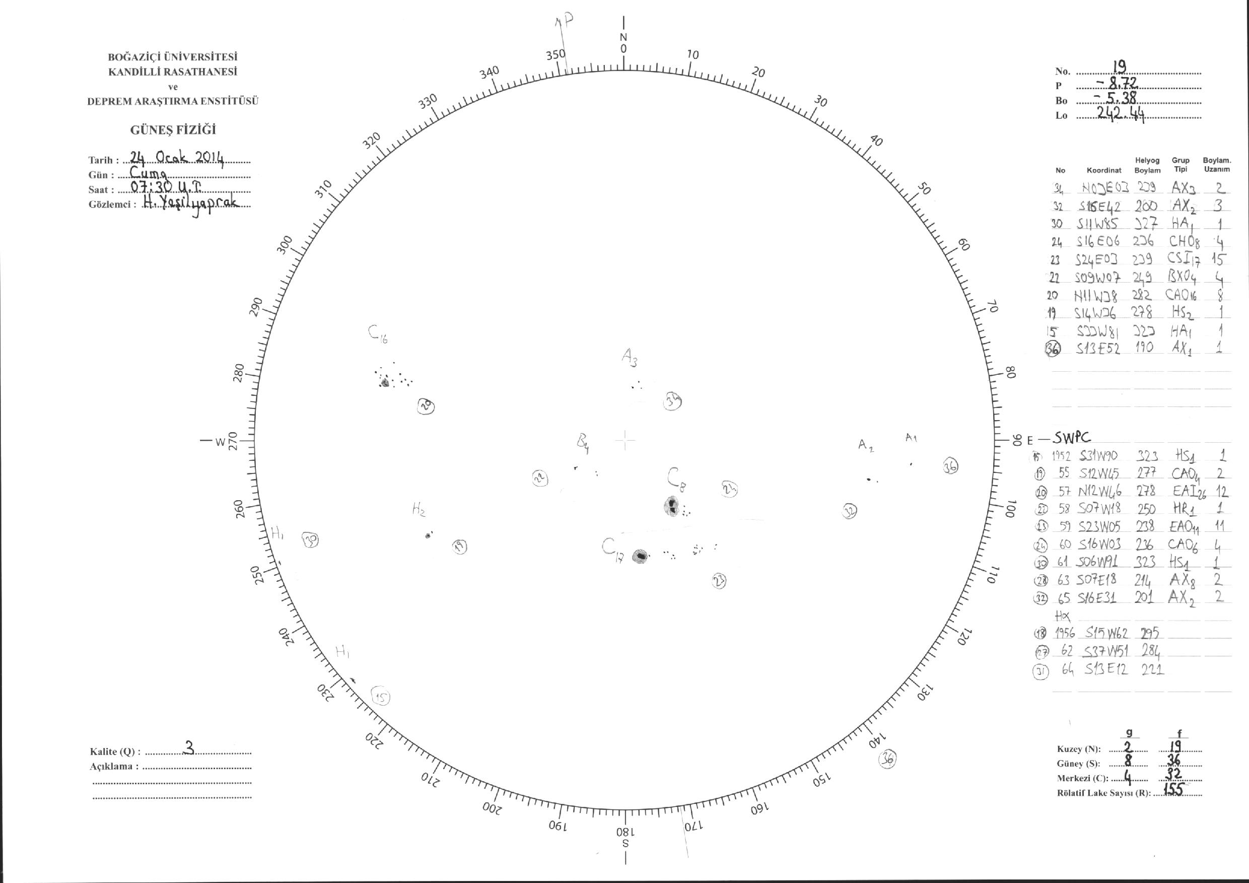 Güneş Lekesi Çizimi - 24.01.2014