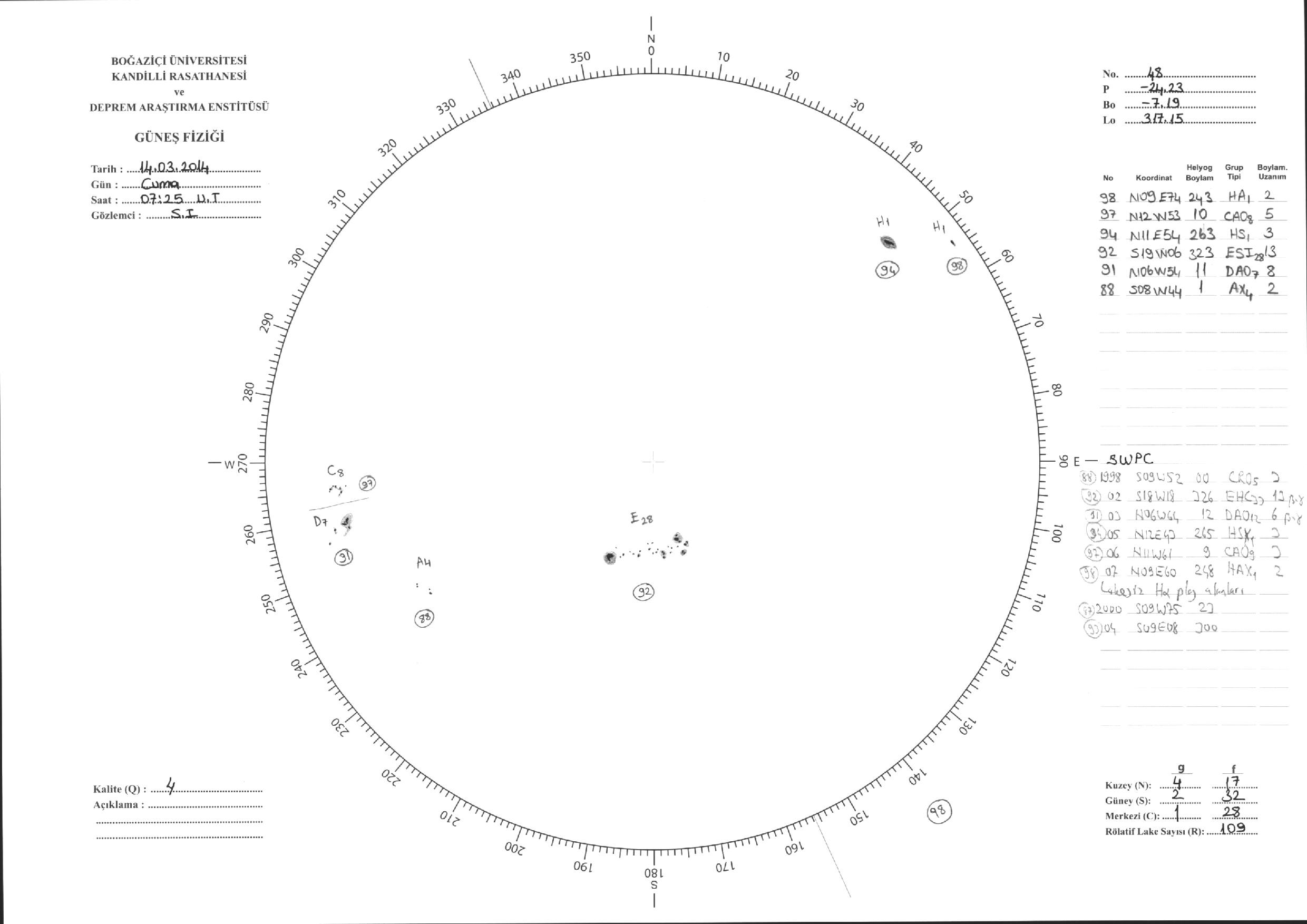 Güneş Lekesi Çizimi - 14.03.2014