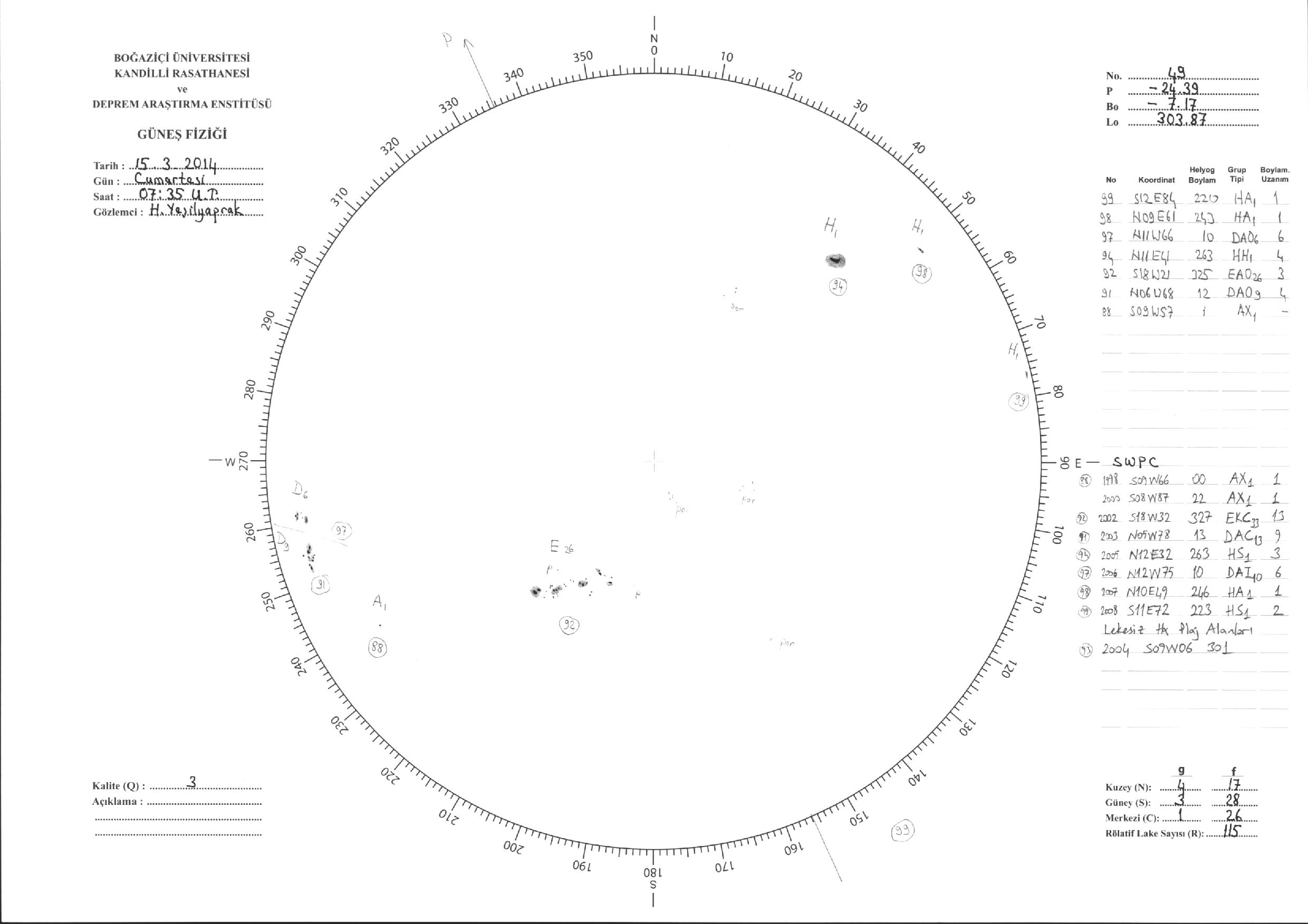 Güneş Lekesi Çizimi - 15.03.2014