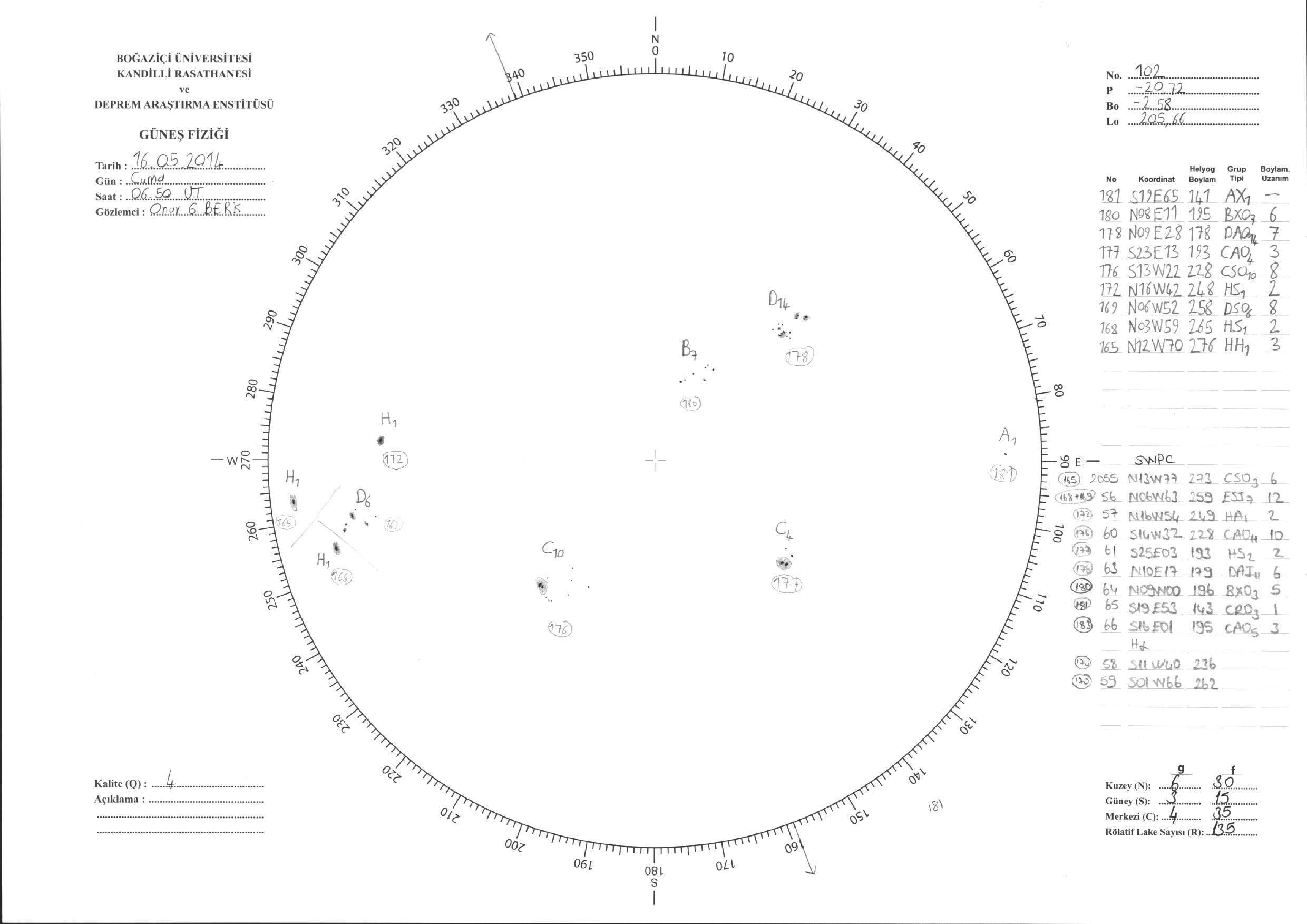 Güneş Lekesi Çizimi - 16.05.2014