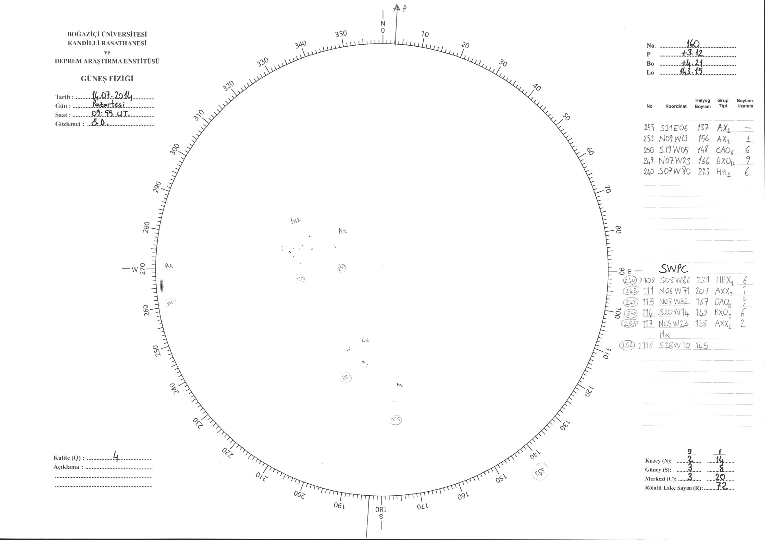 Güneş Lekesi Çizimi - 14.07.2014