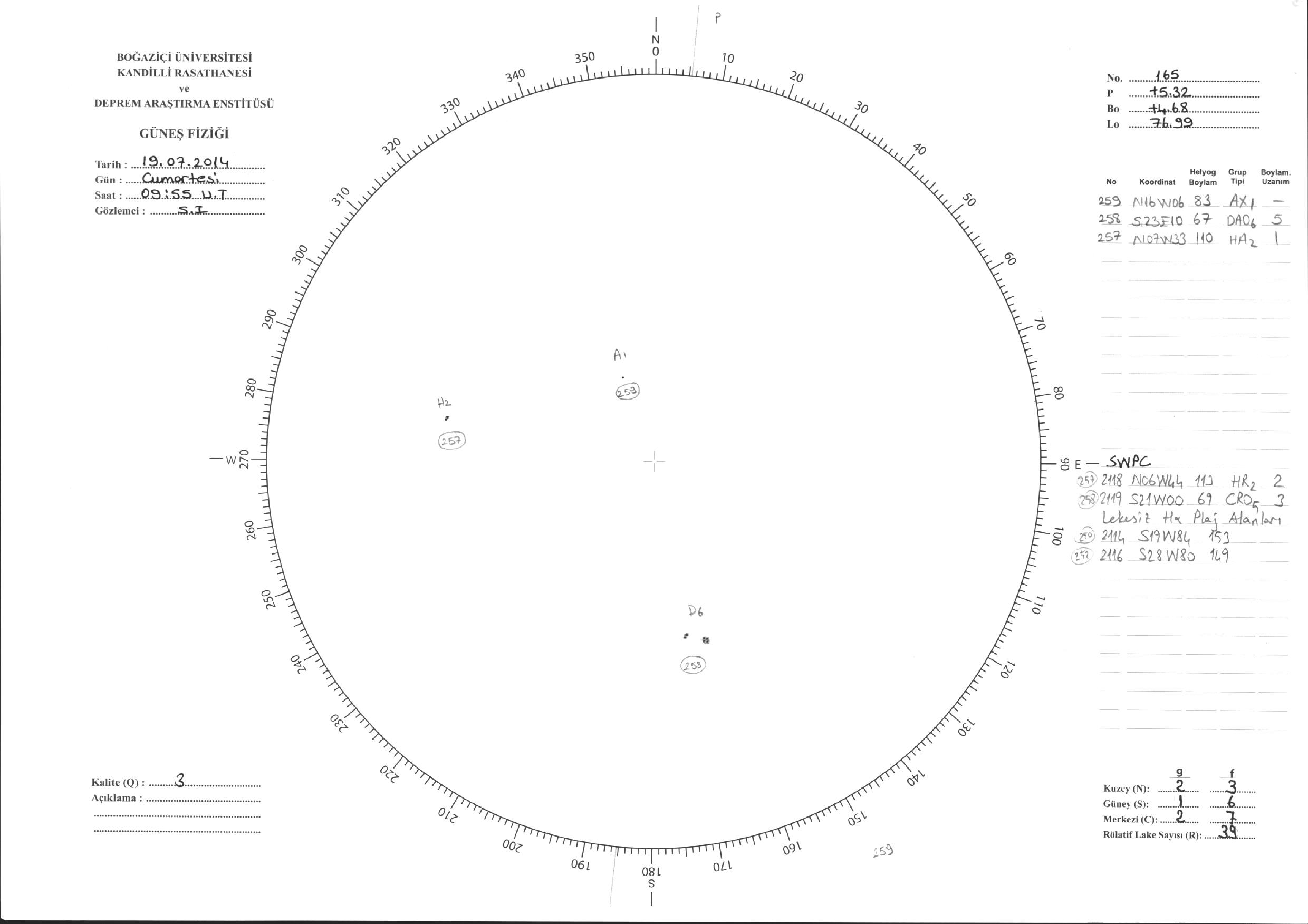Güneş Lekesi Çizimi - 19.07.2014