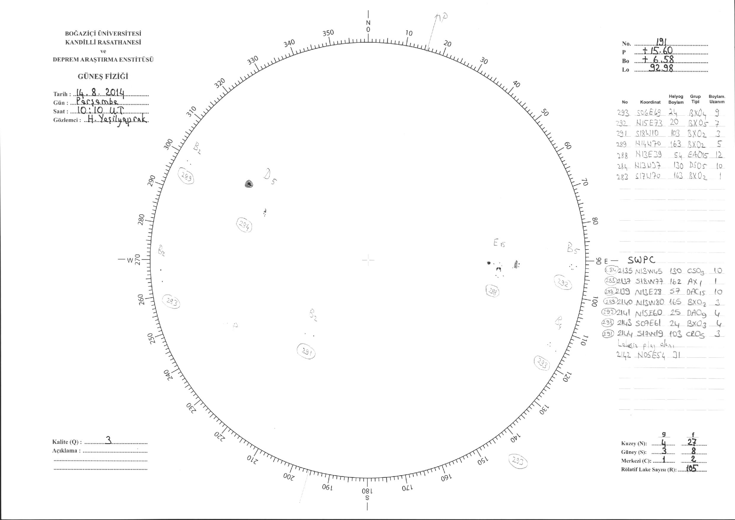 Güneş Lekesi Çizimi - 14.08.2014