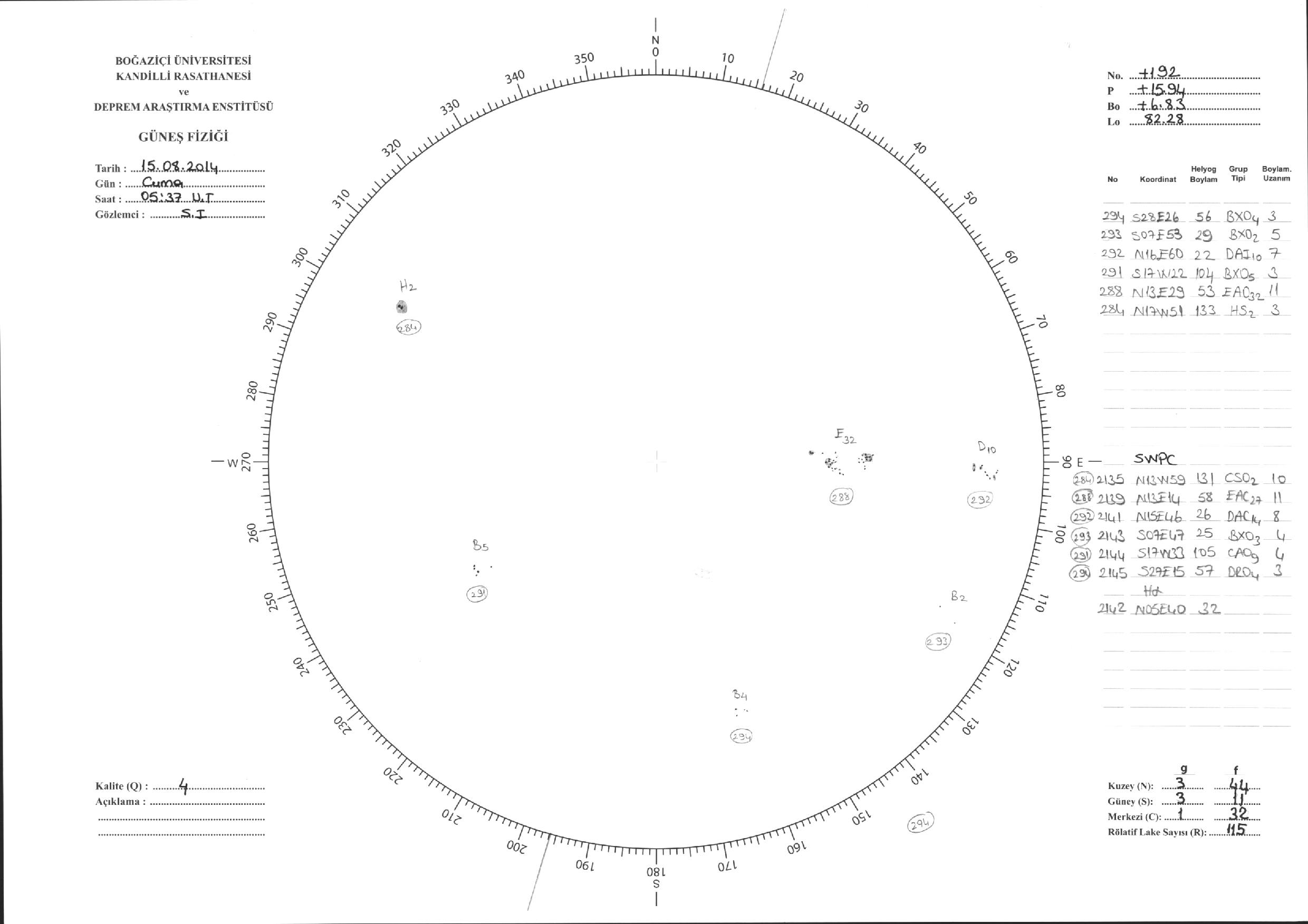 Güneş Lekesi Çizimi - 15.08.2014