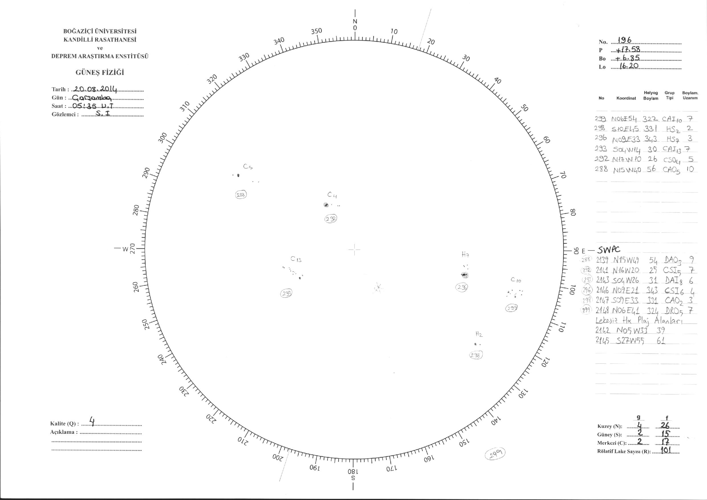 Güneş Lekesi Çizimi - 20.08.2014