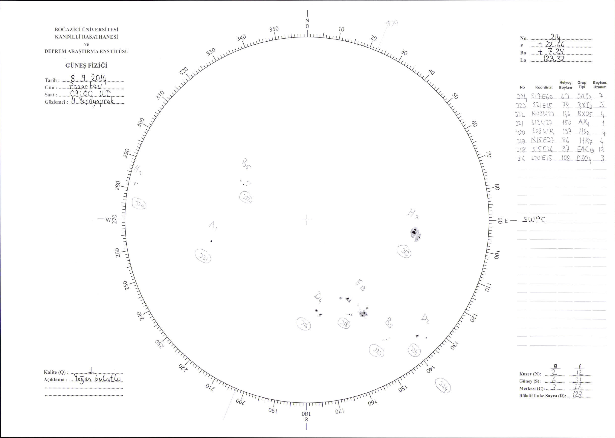 Güneş Lekesi Çizimi - 08.09.2014