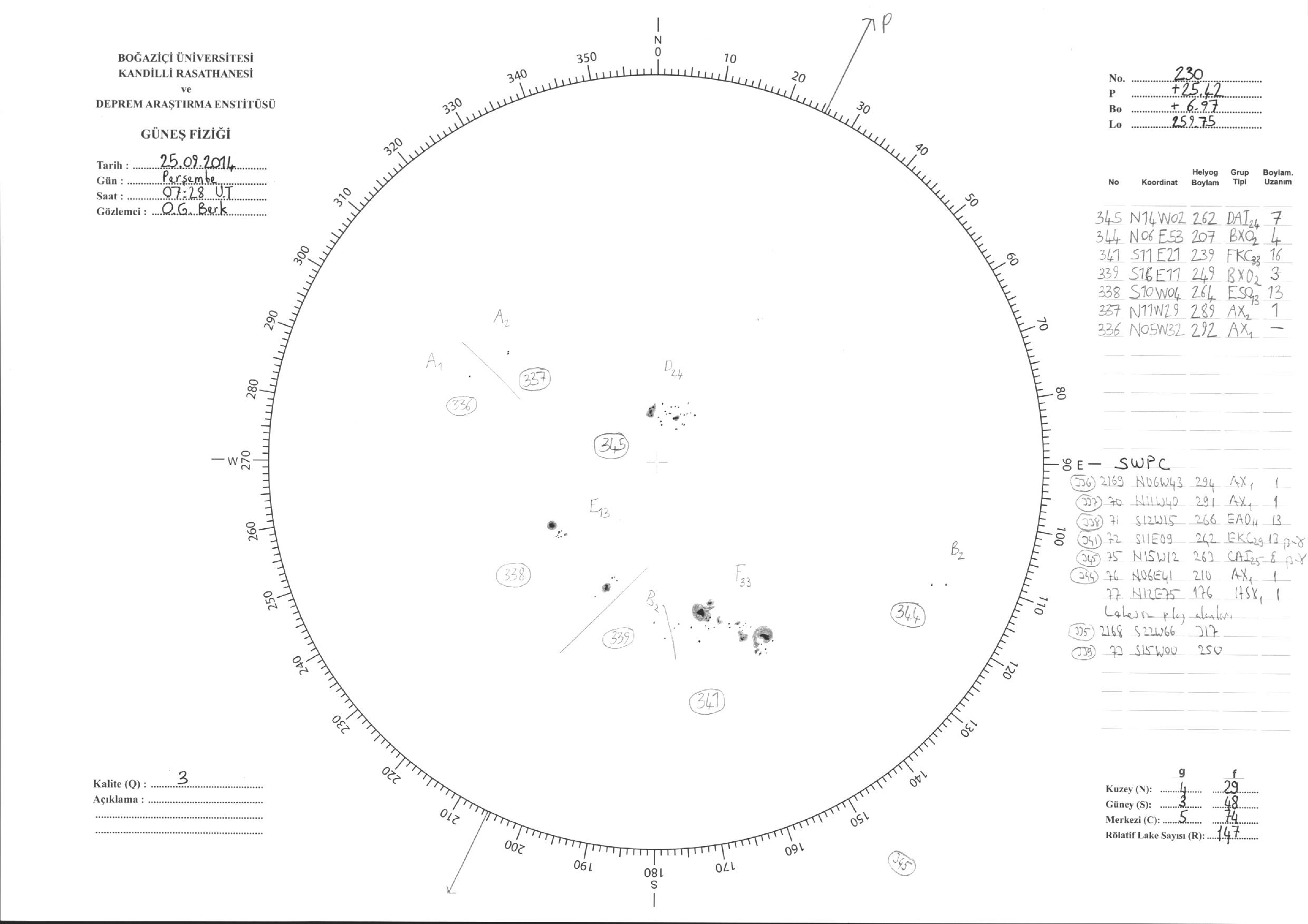Güneş Lekesi Çizimi - 25.09.2014