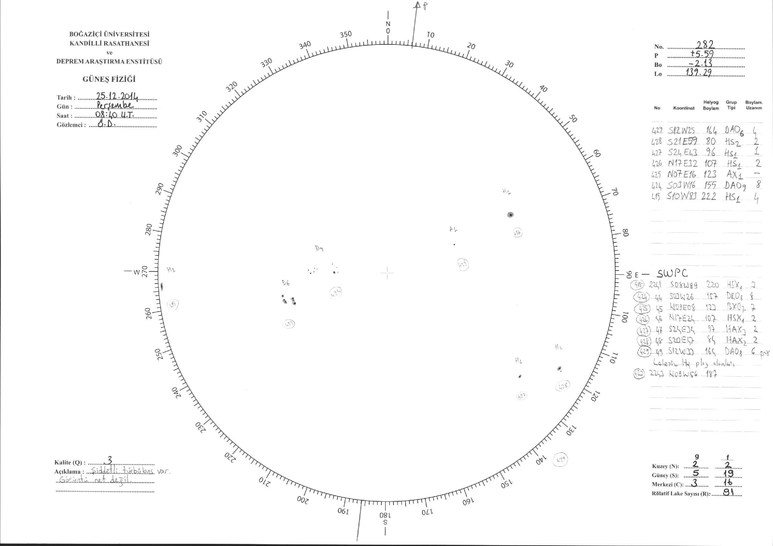 Güneş Lekesi Çizimi - 25.12.2014