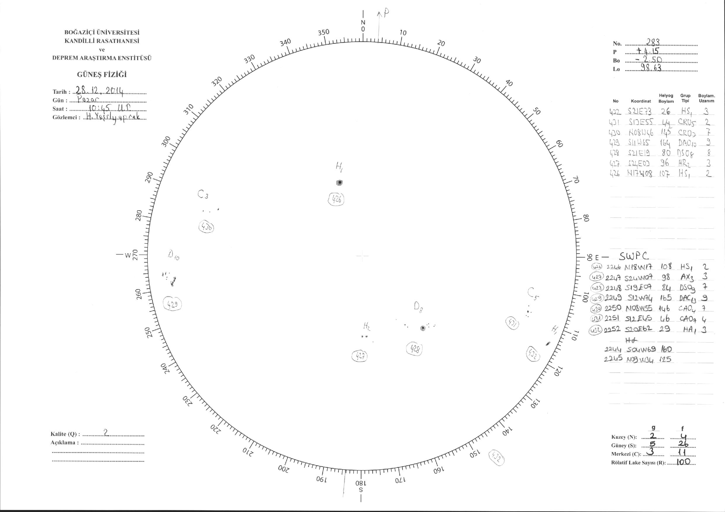 Güneş Lekesi Çizimi - 28.12.2014