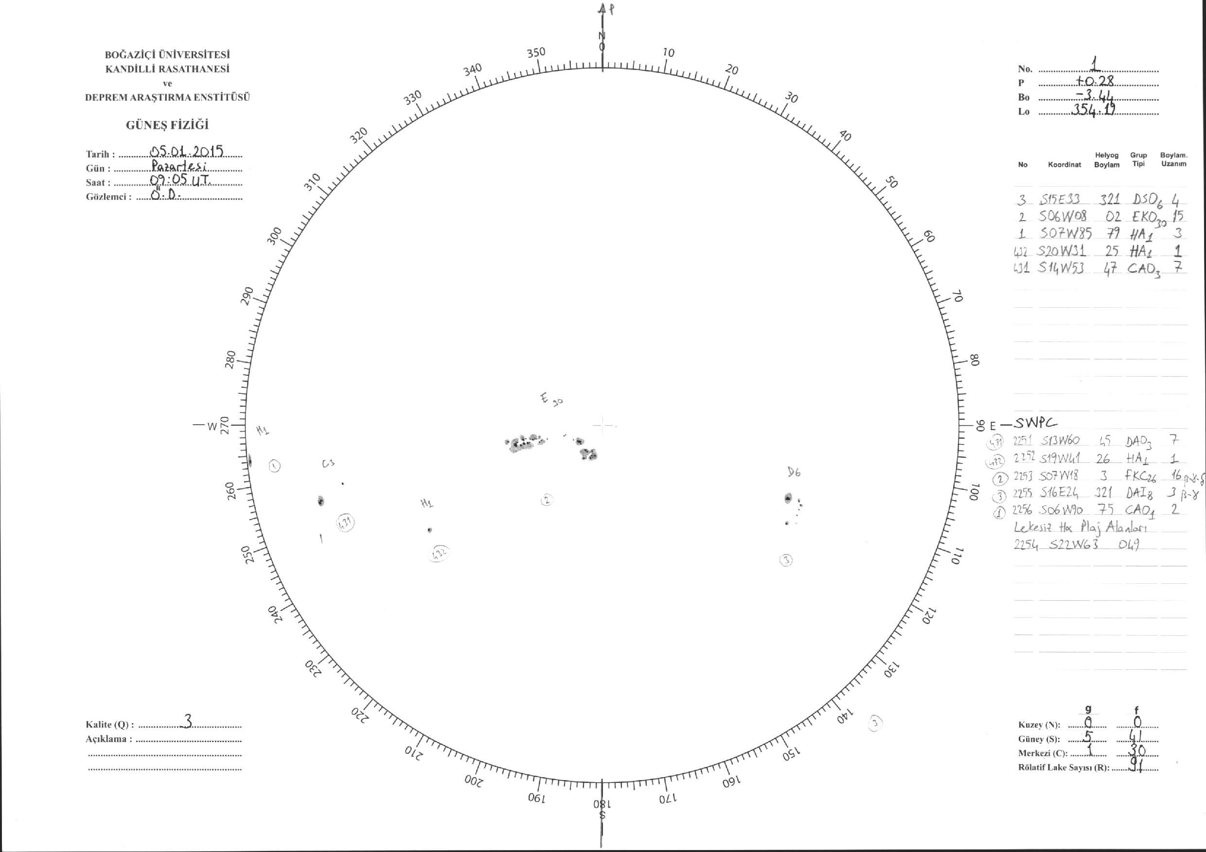 Güneş Lekesi Çizimi - 05.01.2015