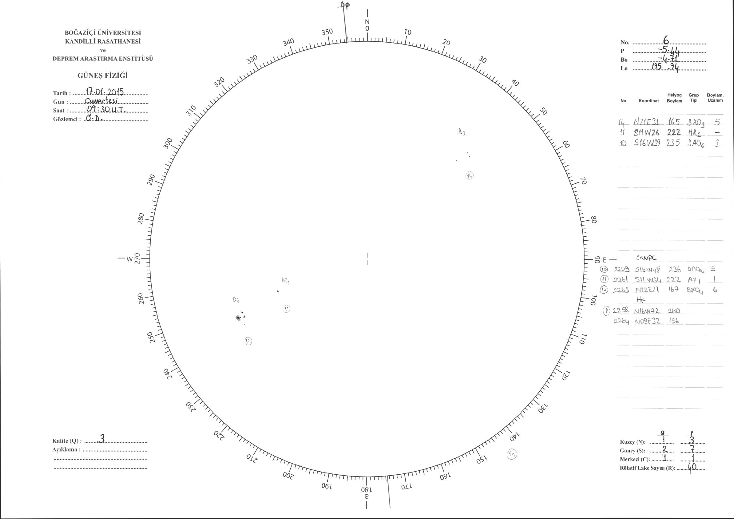 Güneş Lekesi Çizimi - 17.01.2015