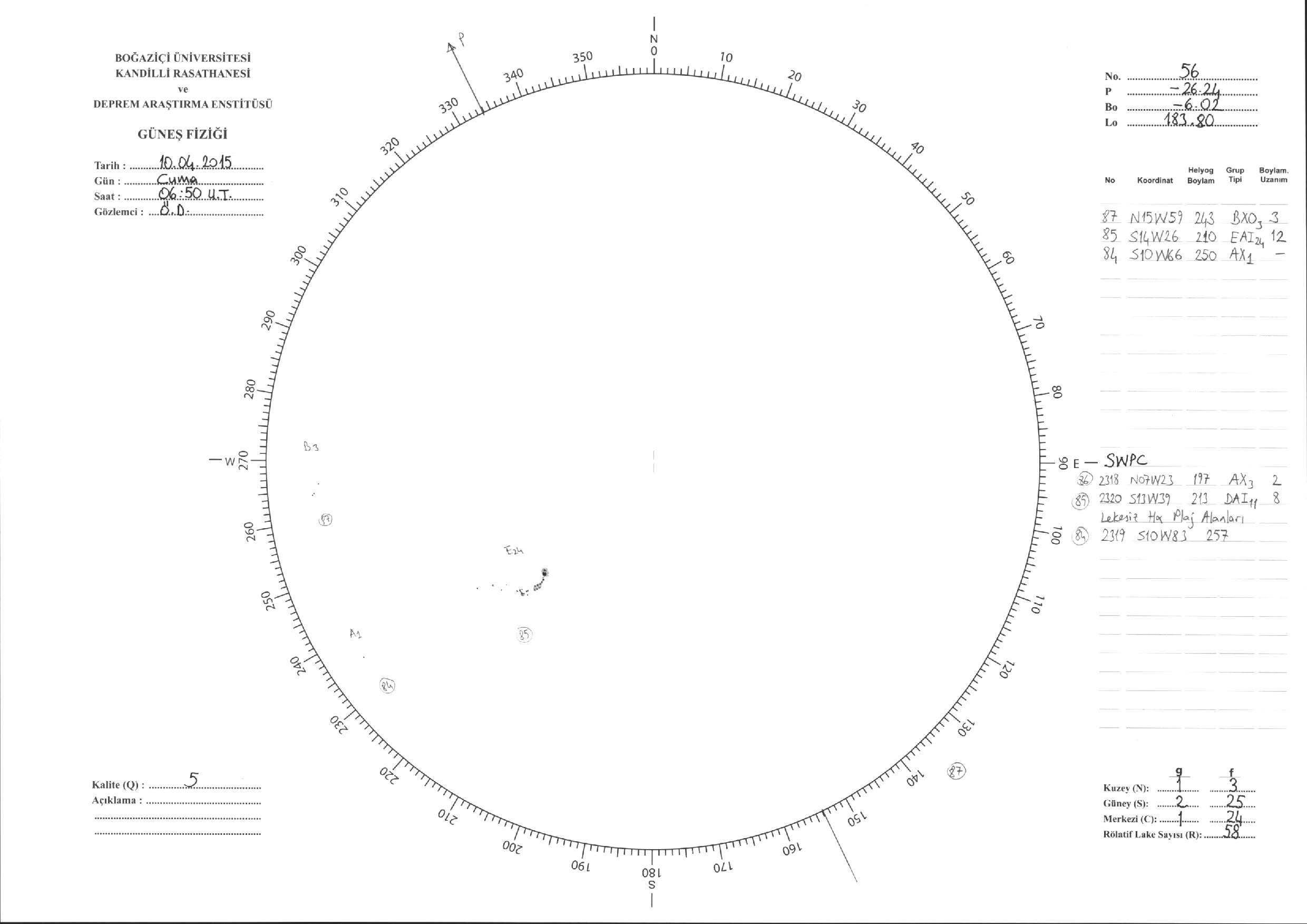 Güneş Lekesi Çizimi - 10.04.2015