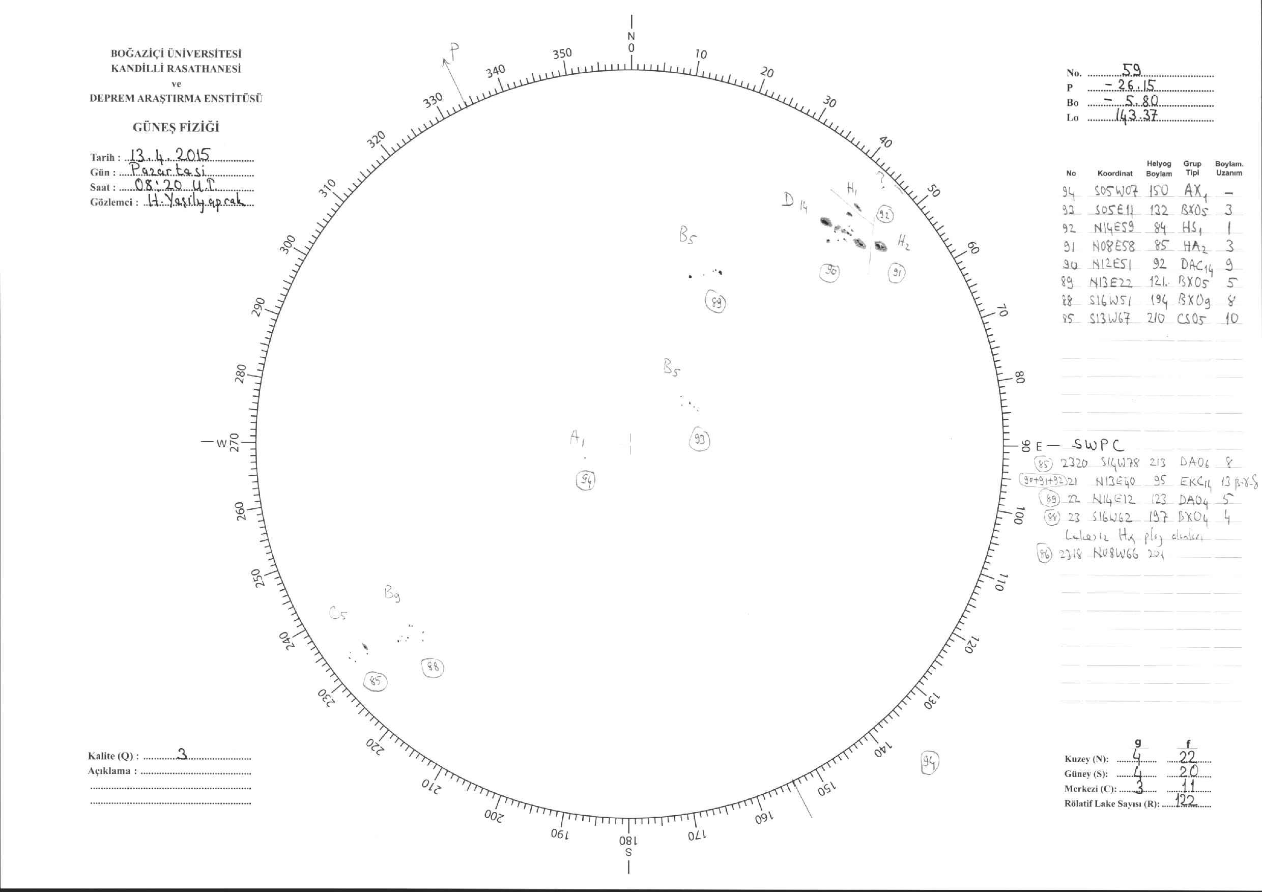 Güneş Lekesi Çizimi - 13.04.2015