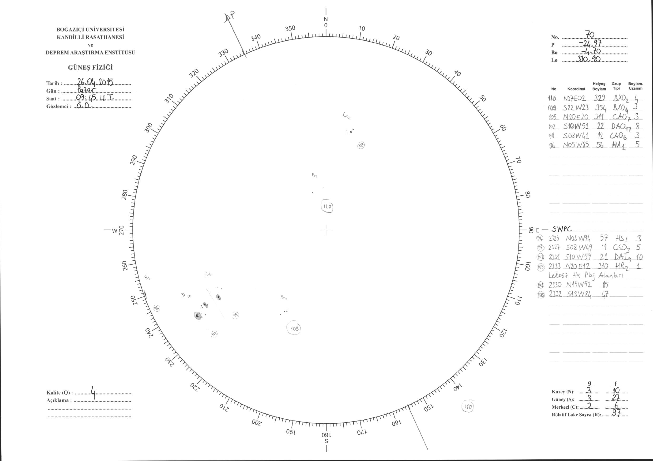 Güneş Lekesi Çizimi - 26.04.2015