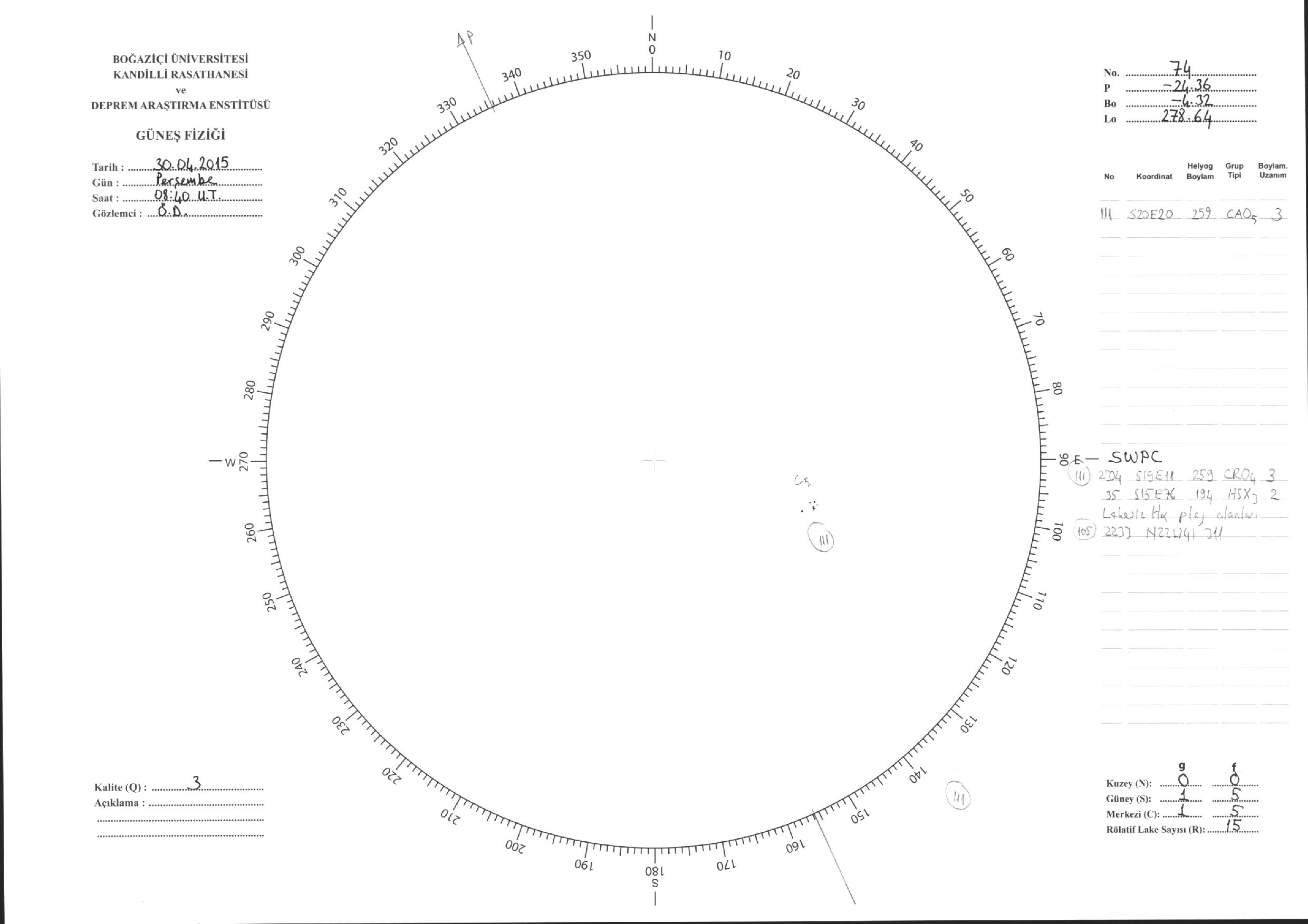 Güneş Lekesi Çizimi - 30.04.2015