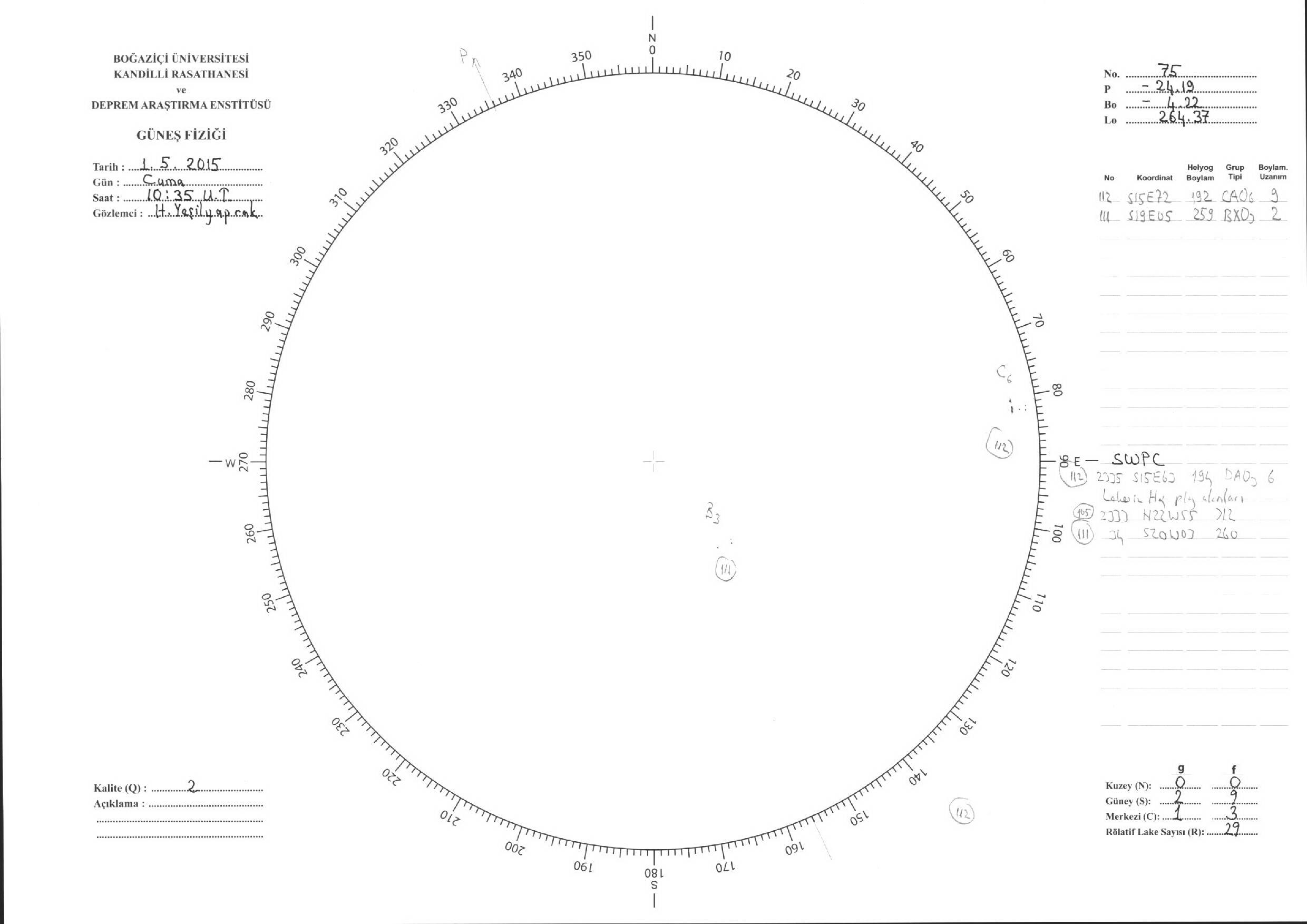Güneş Lekesi Çizimi - 01.05.2015