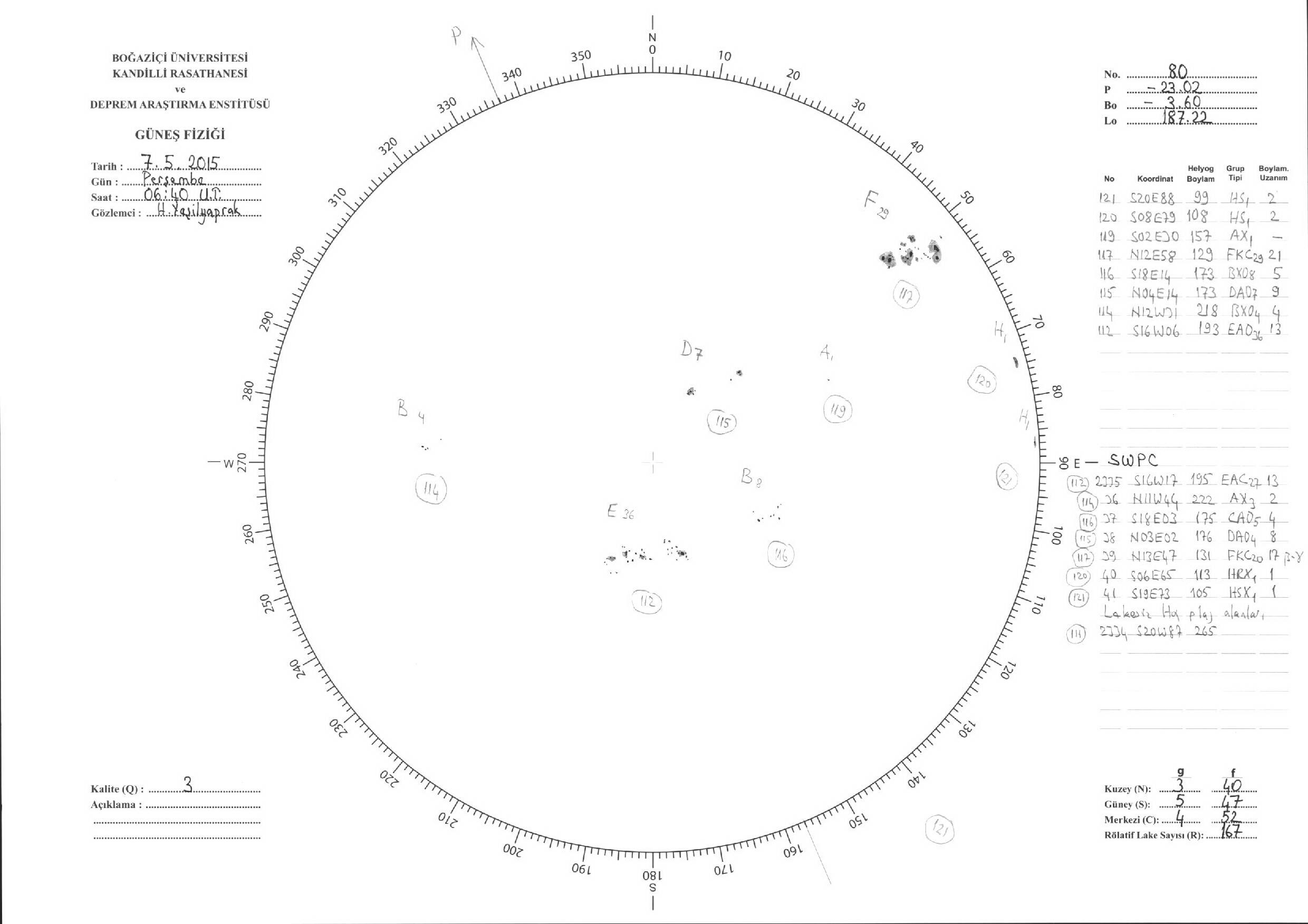 Güneş Lekesi Çizimi - 07.05.2015
