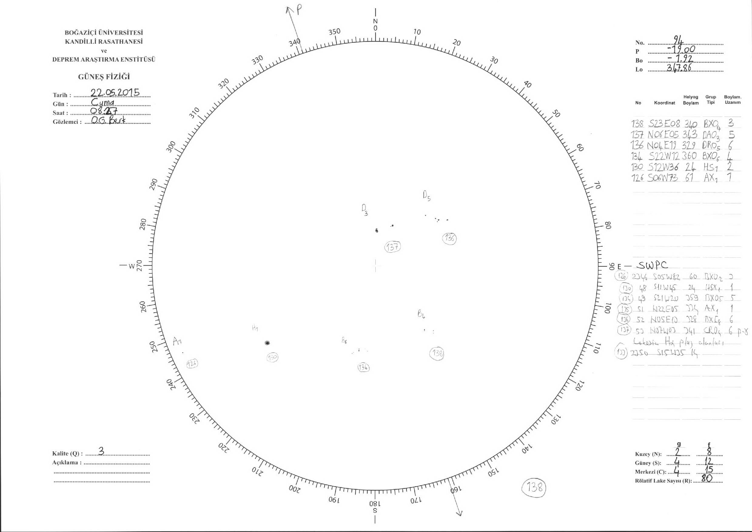 Güneş Lekesi Çizimi - 22.05.2015