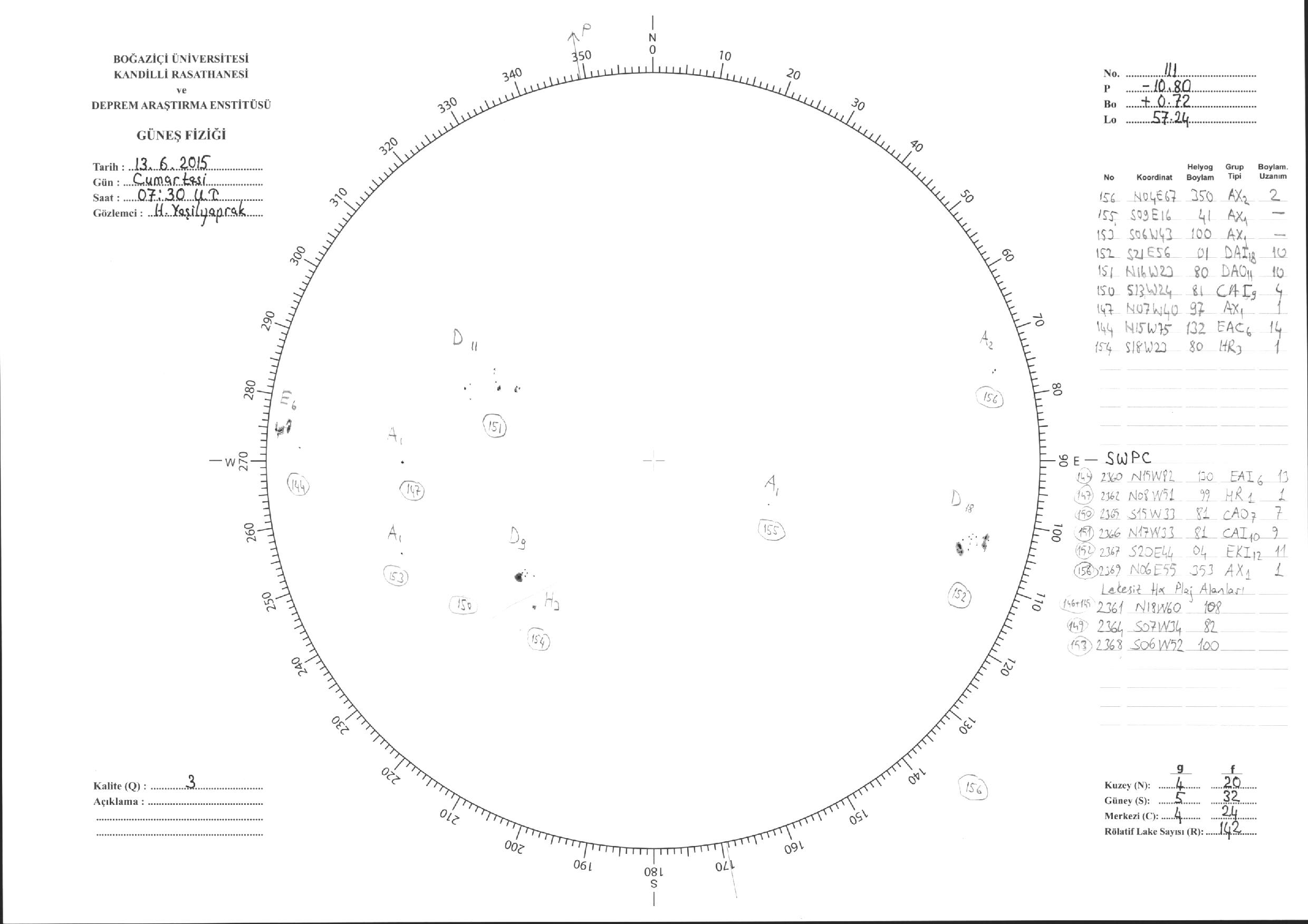 Güneş Lekesi Çizimi - 13.06.2015