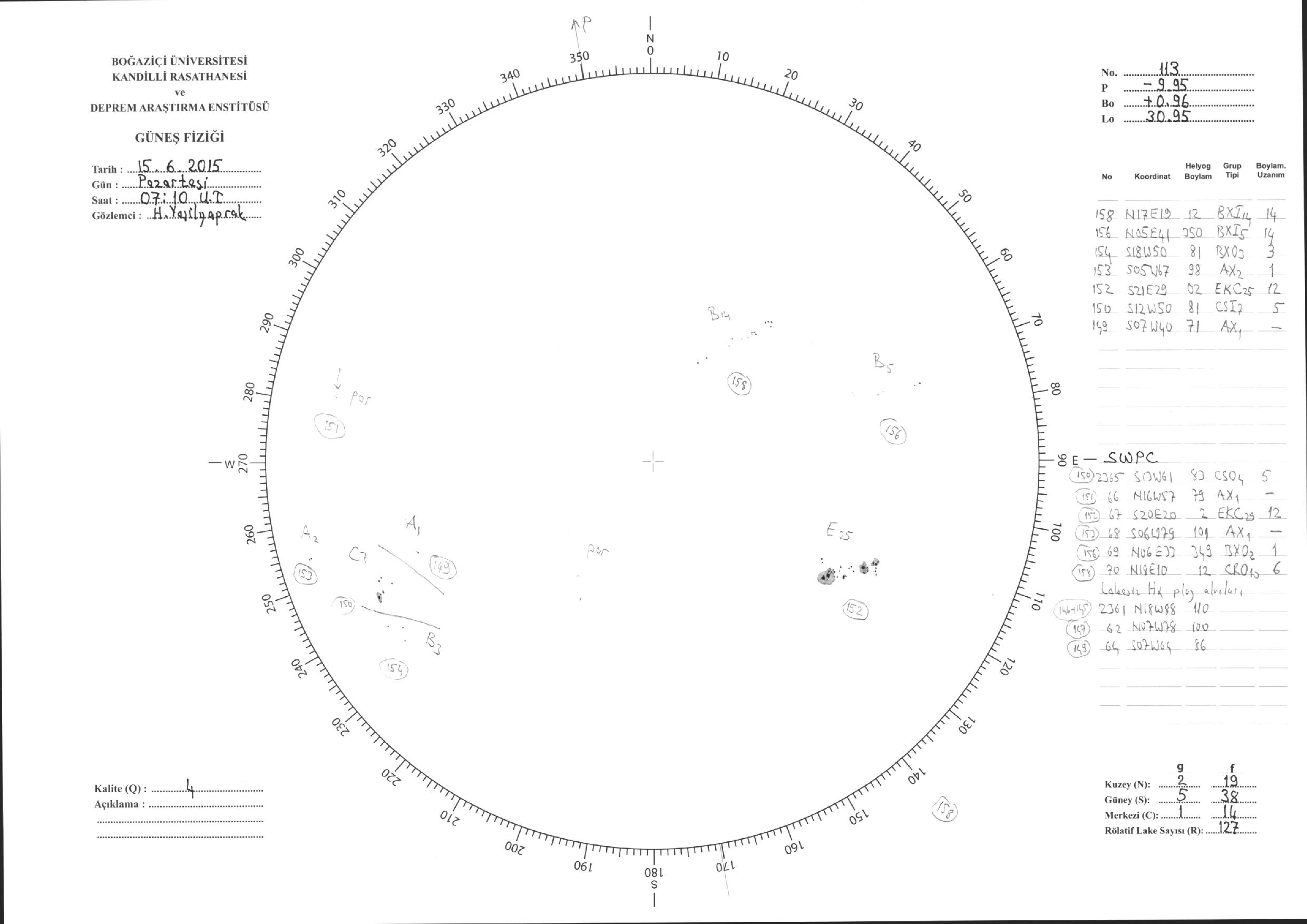 Güneş Lekesi Çizimi - 15.06.2015