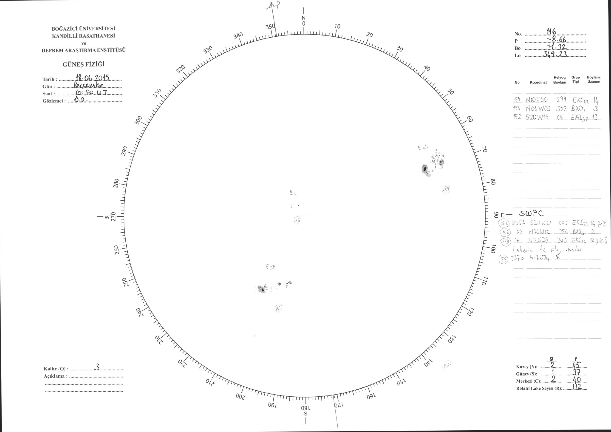 Güneş Lekesi Çizimi - 18.06.2015
