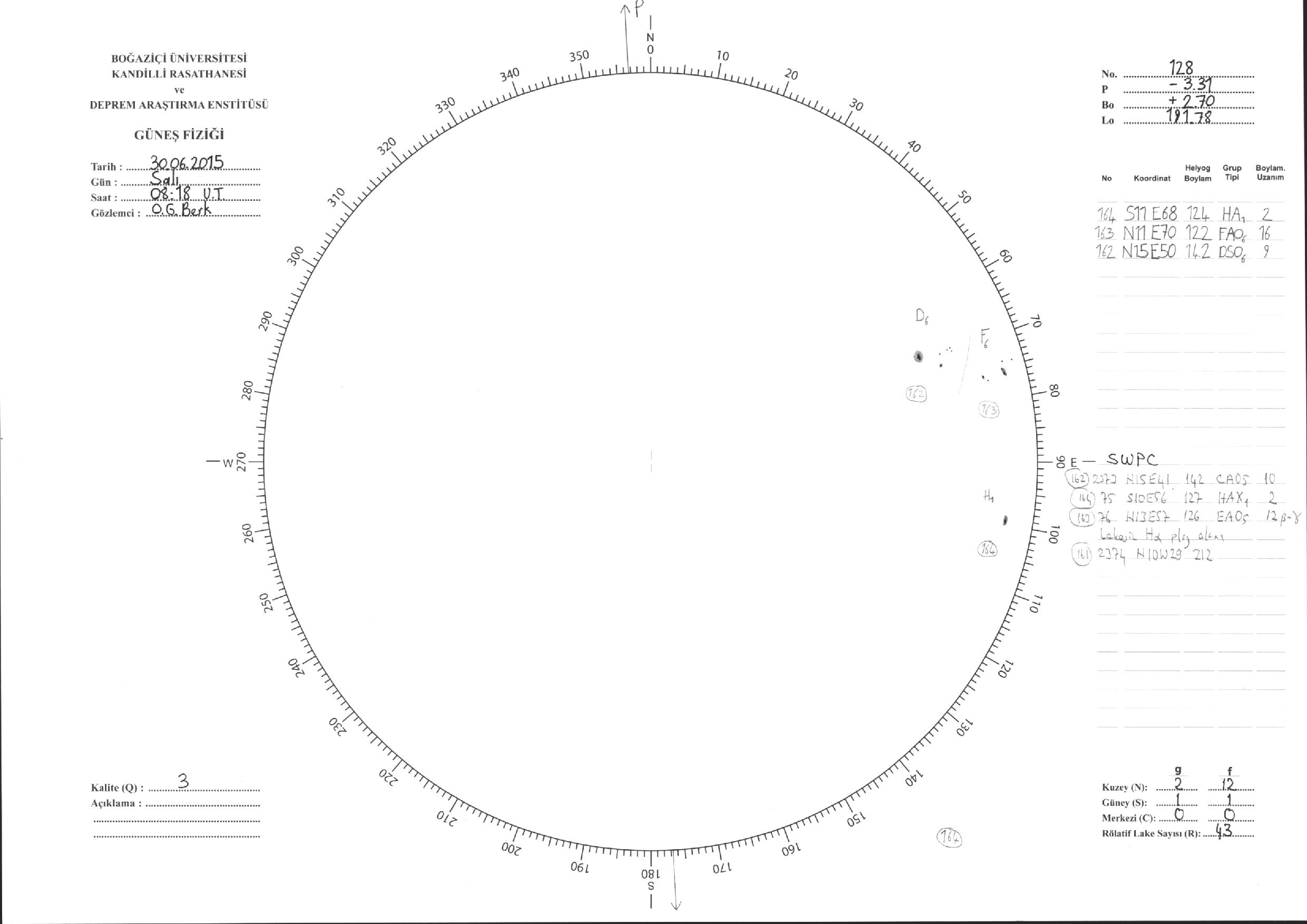Güneş Lekesi Çizimi - 30.06.2015