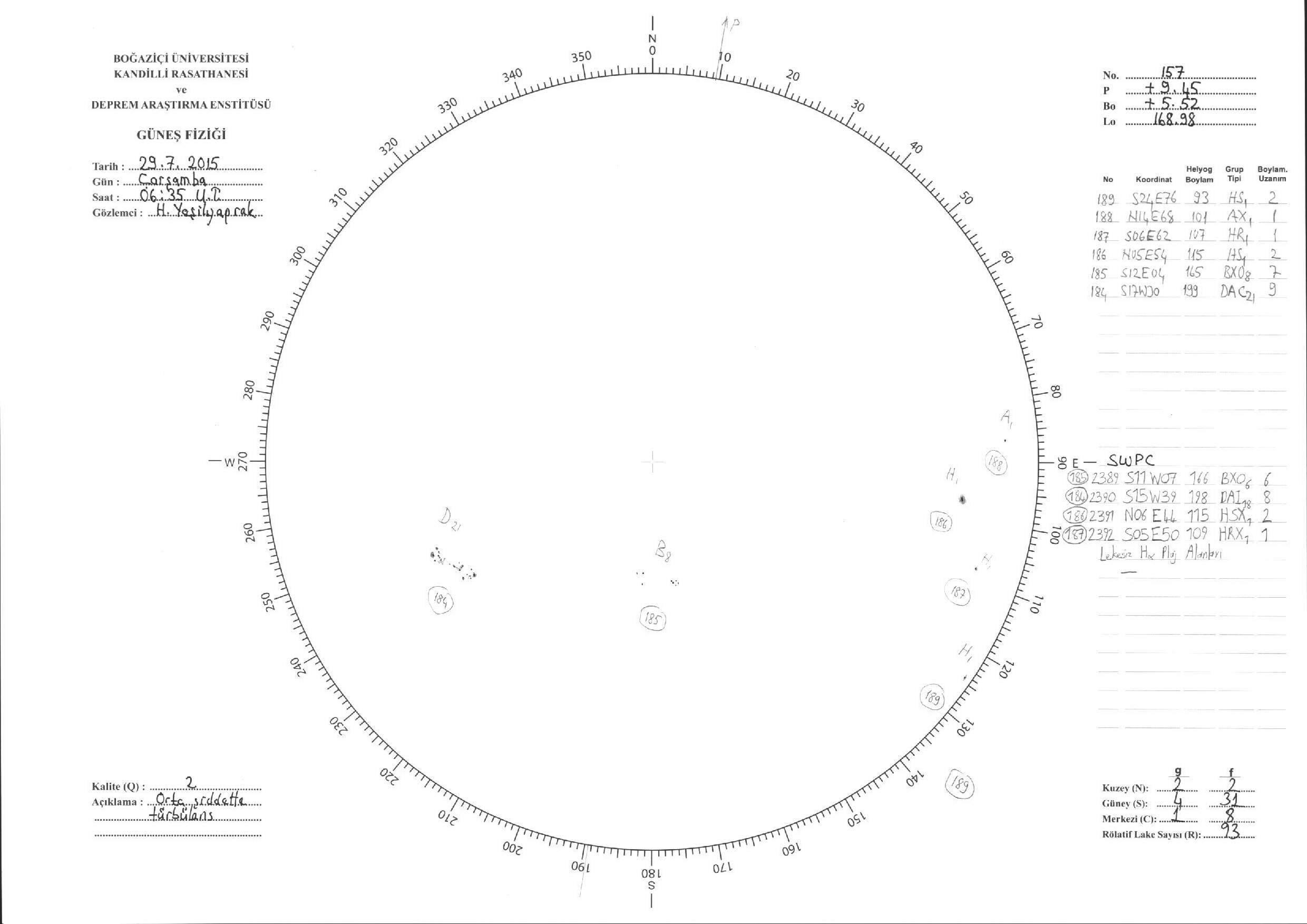 Güneş Lekesi Çizimi - 29.07.2015