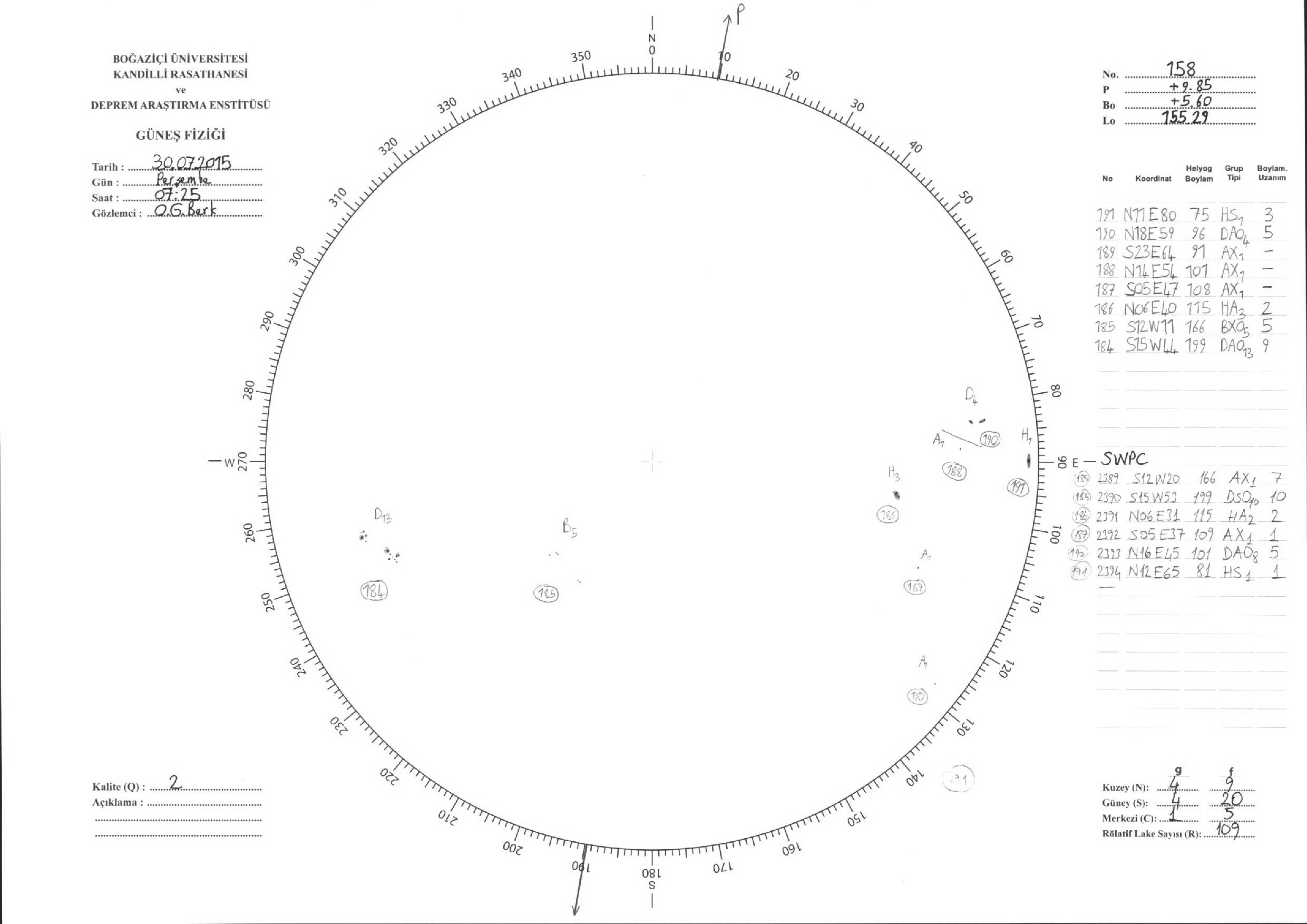 Güneş Lekesi Çizimi - 30.07.2015