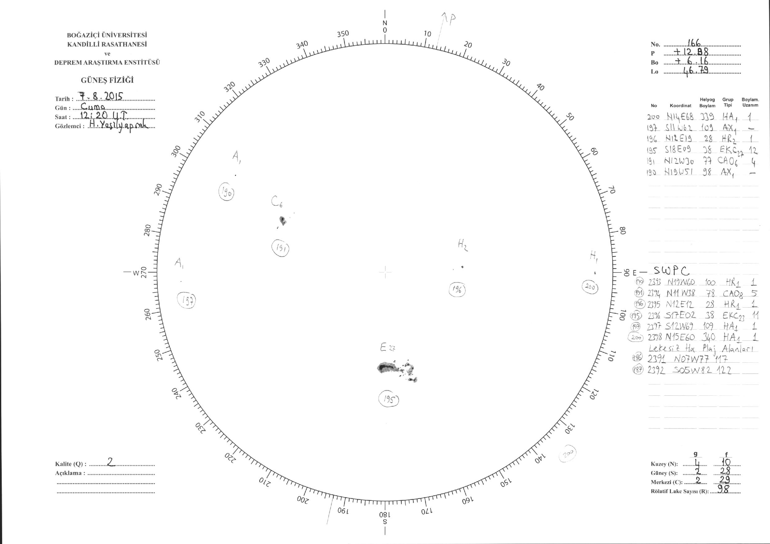 Güneş Lekesi Çizimi - 07.08.2015