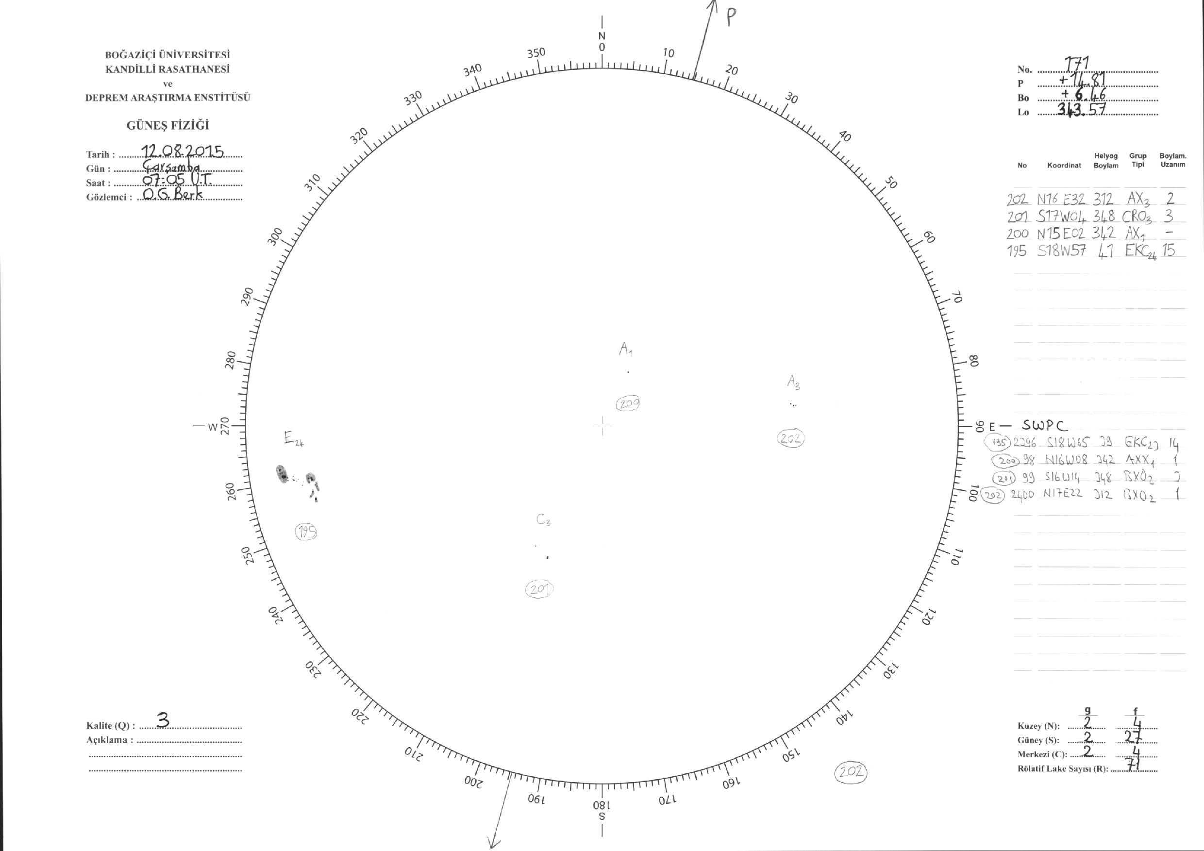Güneş Lekesi Çizimi - 12.08.2015