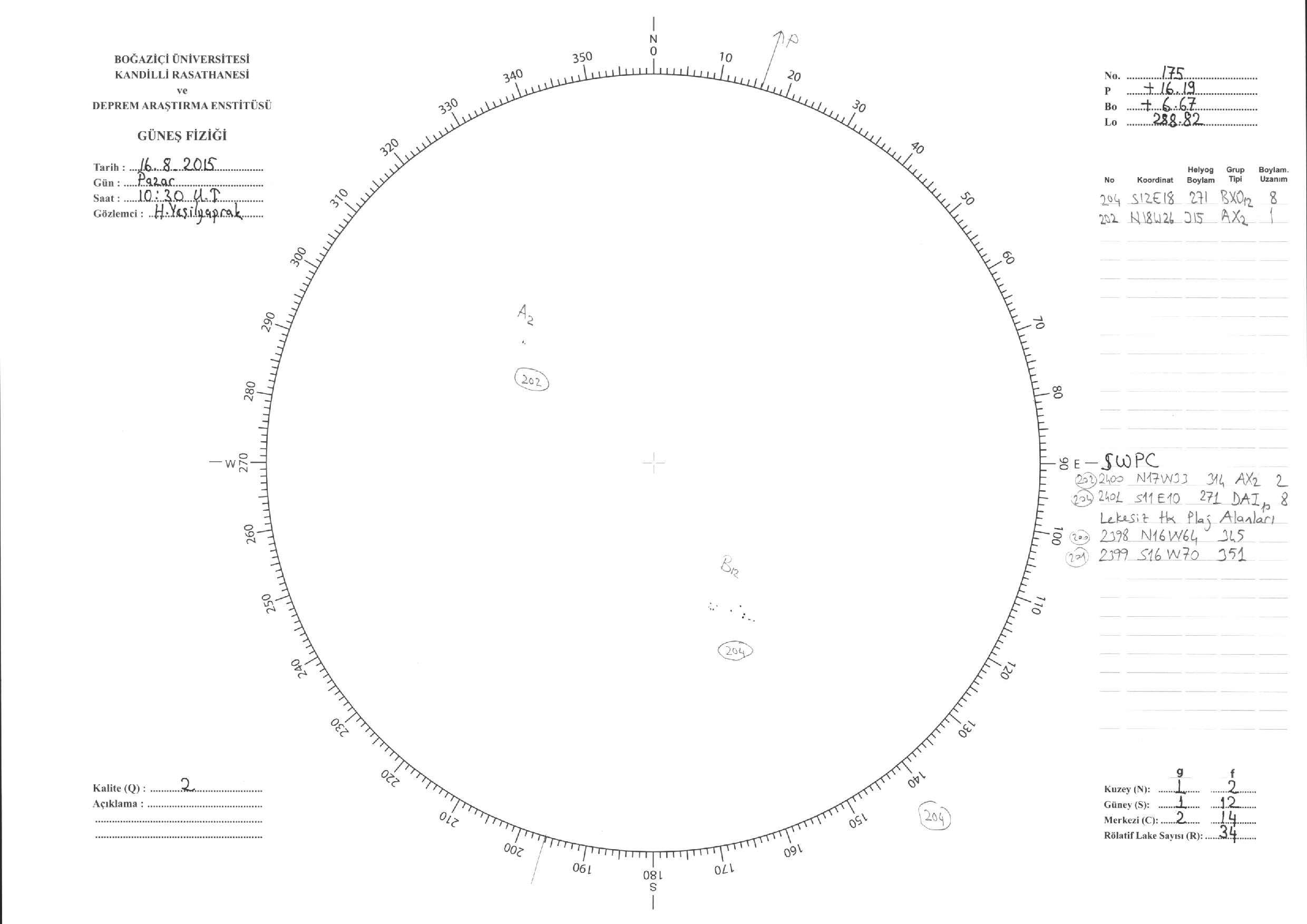 Güneş Lekesi Çizimi - 16.08.2015