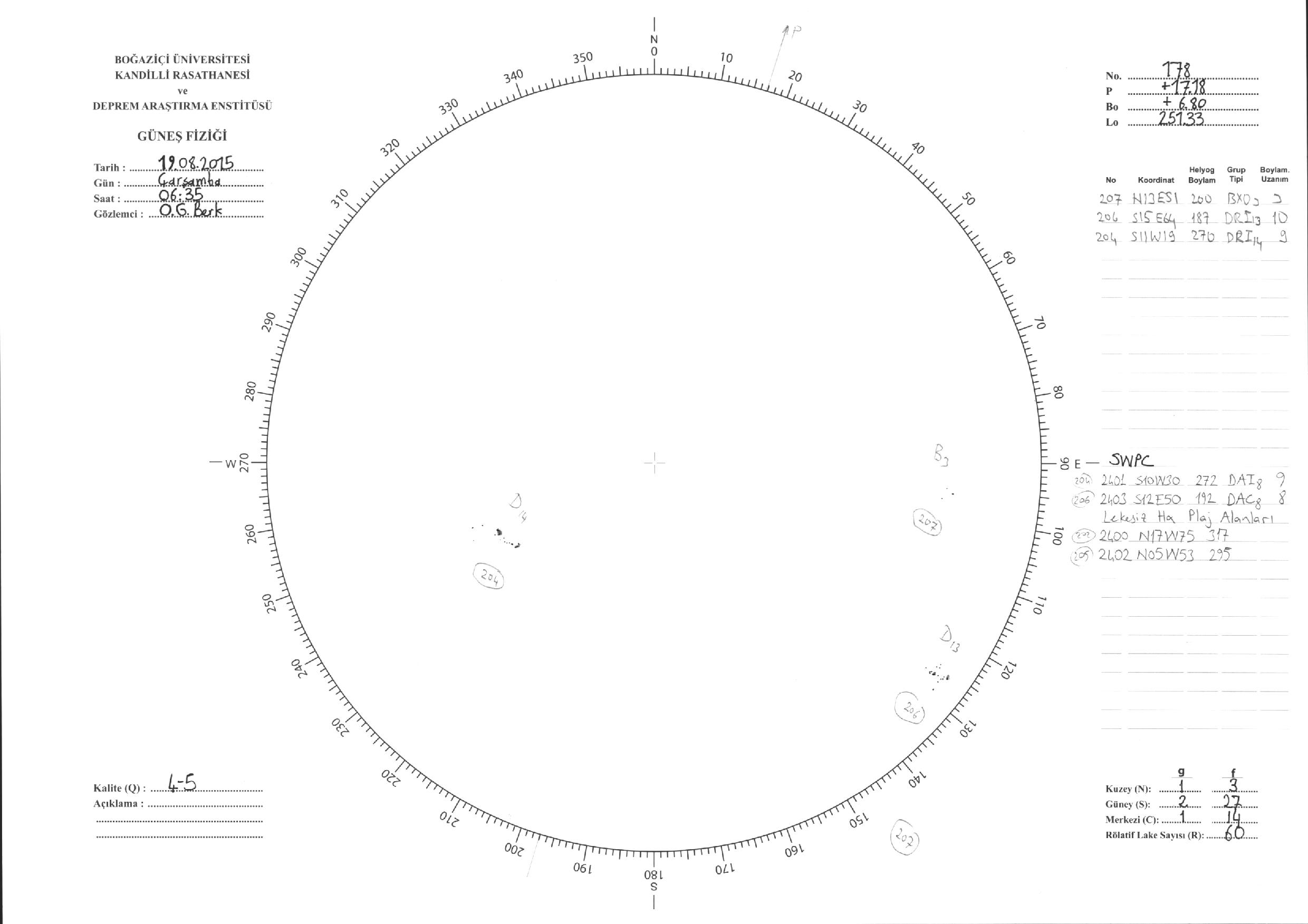 Güneş Lekesi Çizimi - 19.08.2015