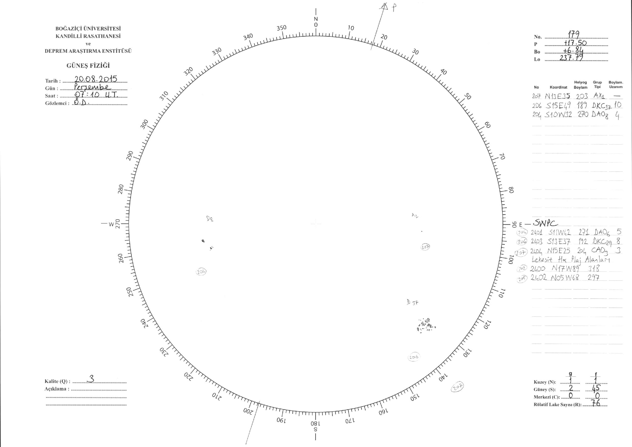 Güneş Lekesi Çizimi - 20.08.2015