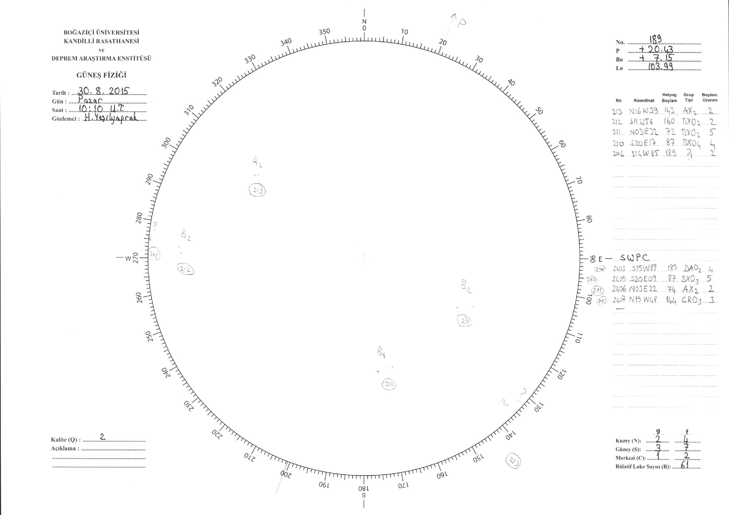 Güneş Lekesi Çizimi - 30.08.2015