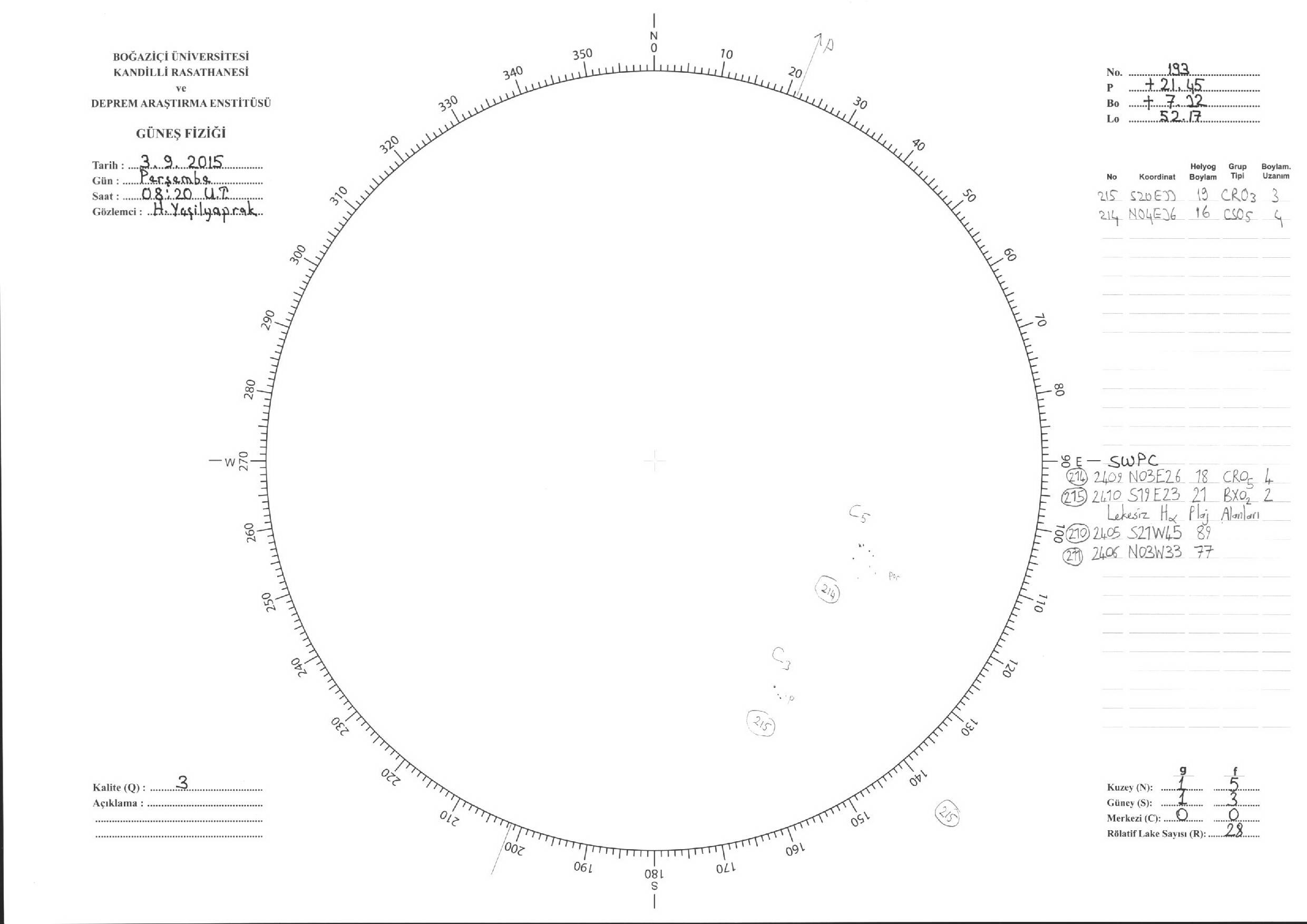 Güneş Lekesi Çizimi - 03.09.2015