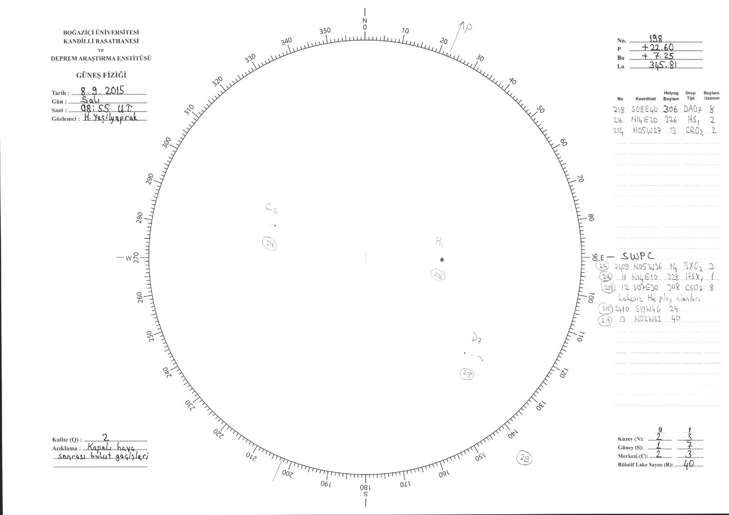 Güneş Lekesi Çizimi - 08.09.2015