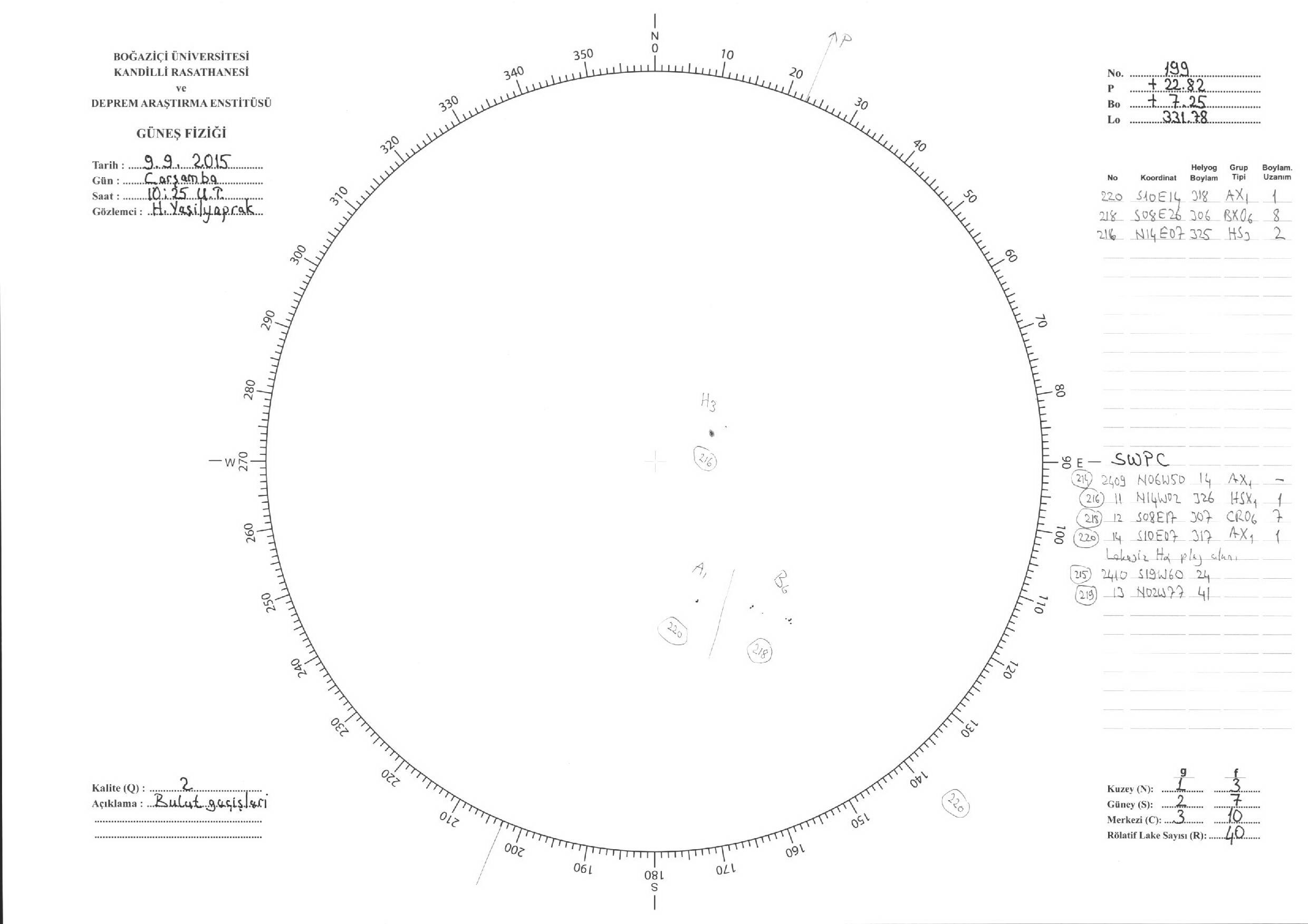 Güneş Lekesi Çizimi - 09.09.2015