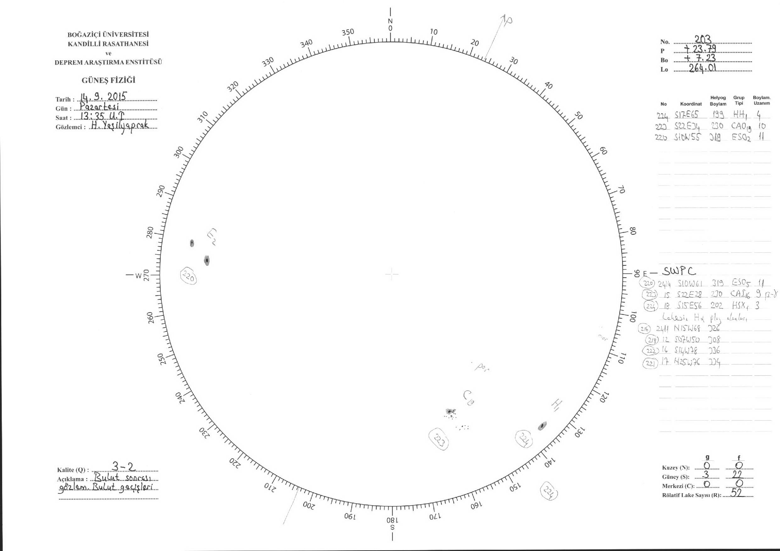 Güneş Lekesi Çizimi - 14.09.2015