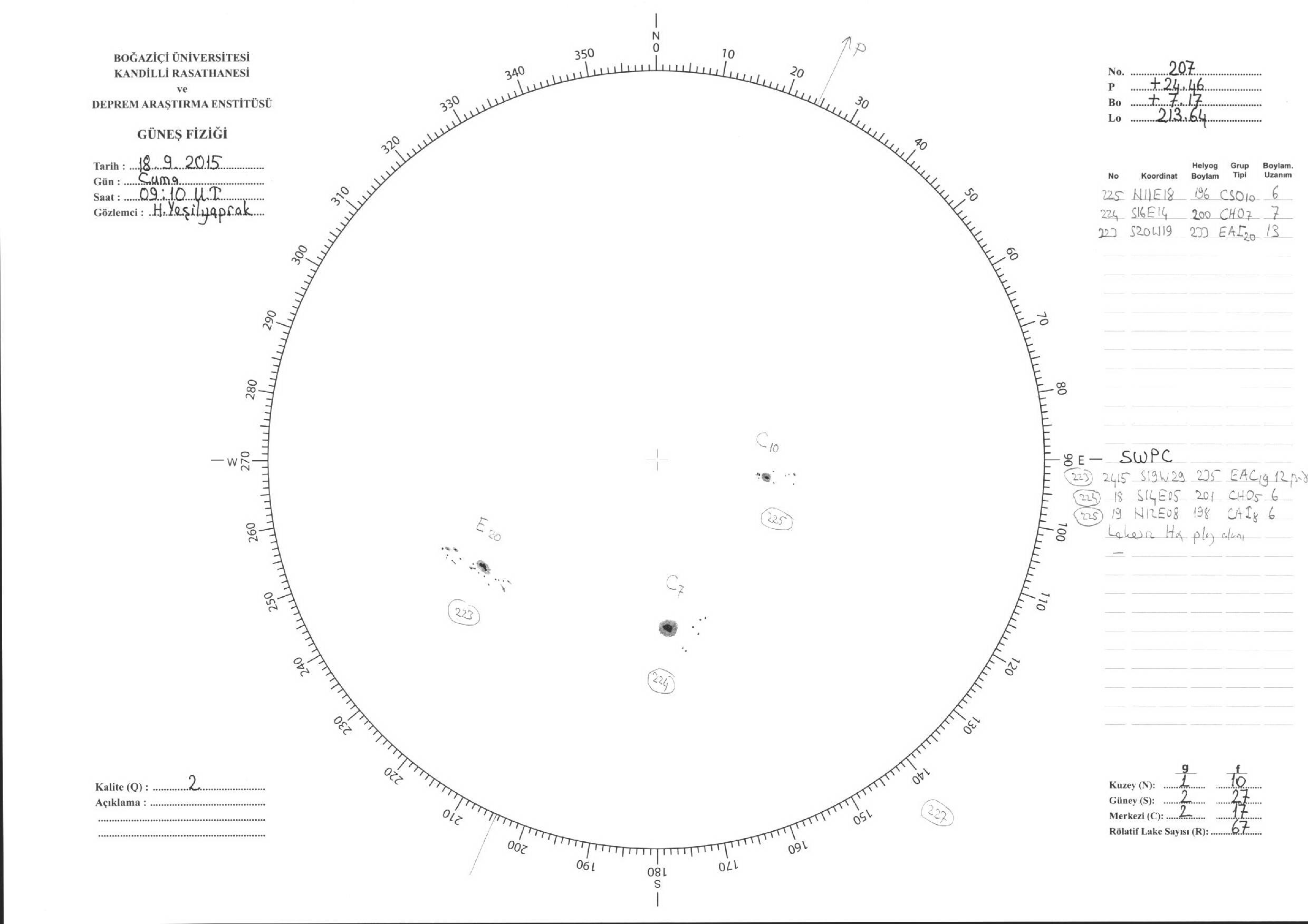 Güneş Lekesi Çizimi - 18.09.2015