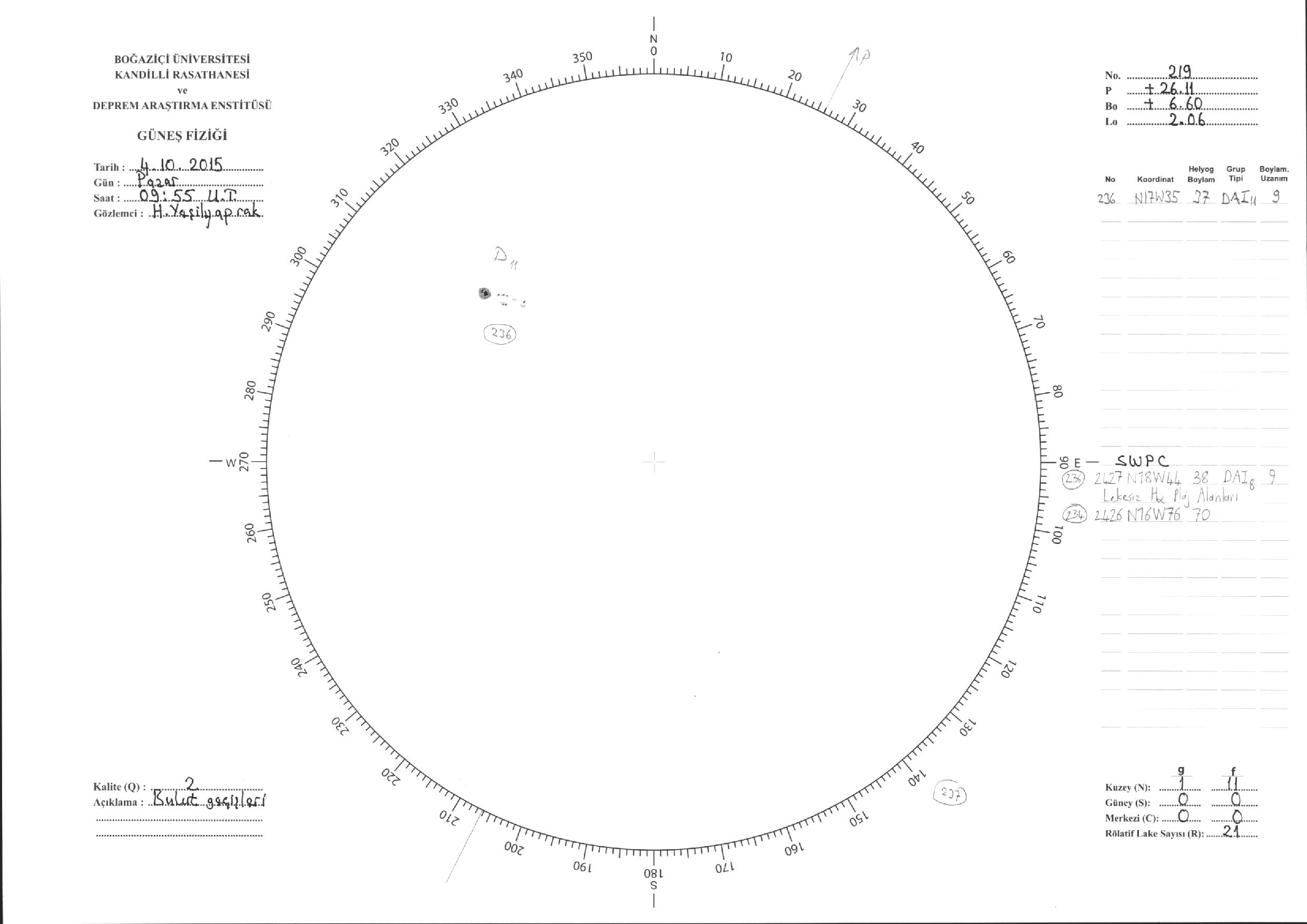 Güneş Lekesi Çizimi - 04.10.2015