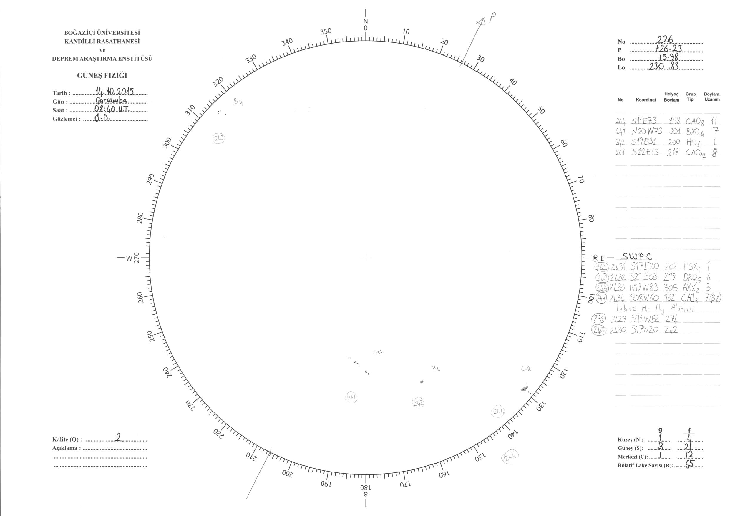 Güneş Lekesi Çizimi - 14.10.2015