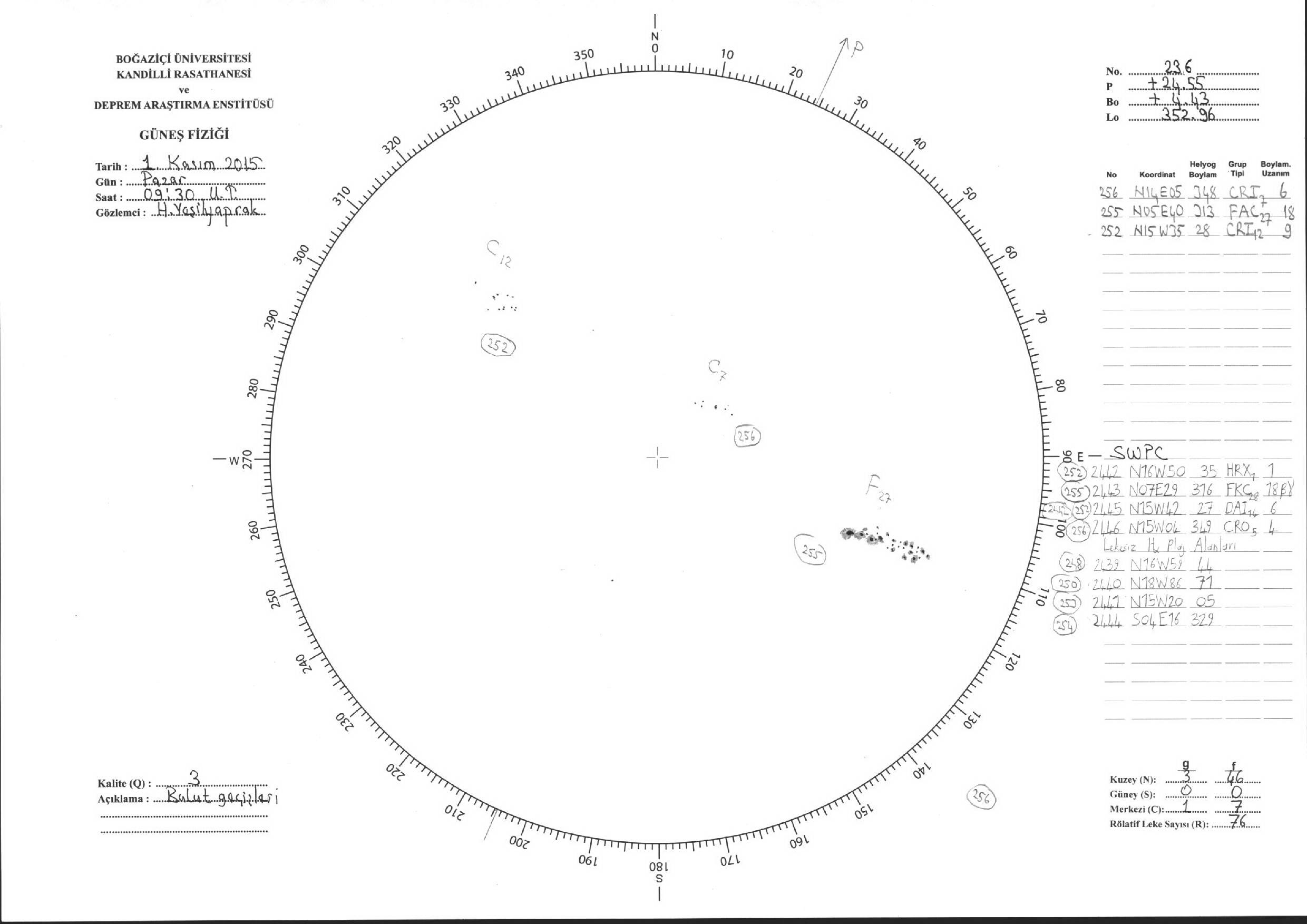 Güneş Lekesi Çizimi - 01.11.2015