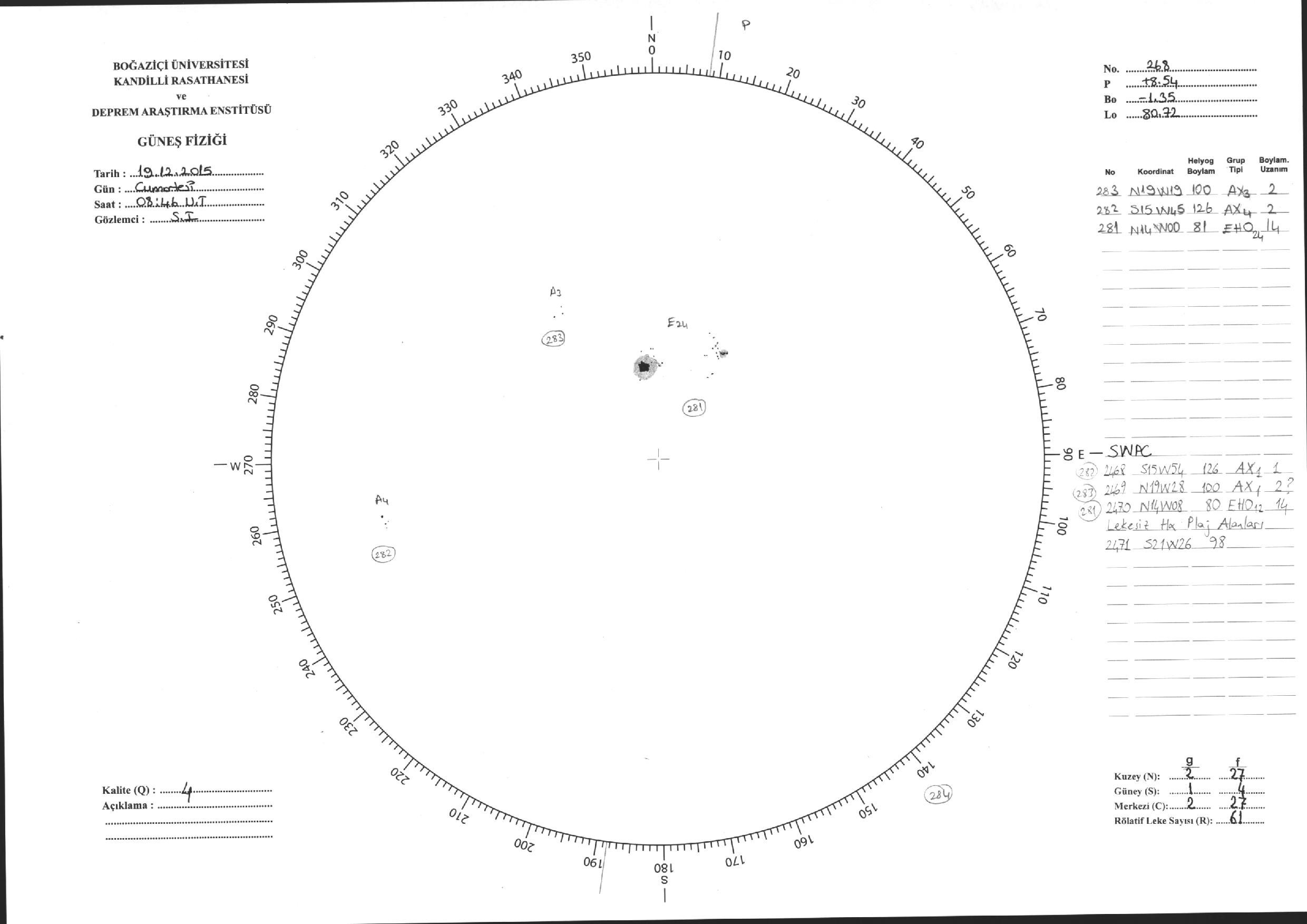 Güneş Lekesi Çizimi - 19.12.2015