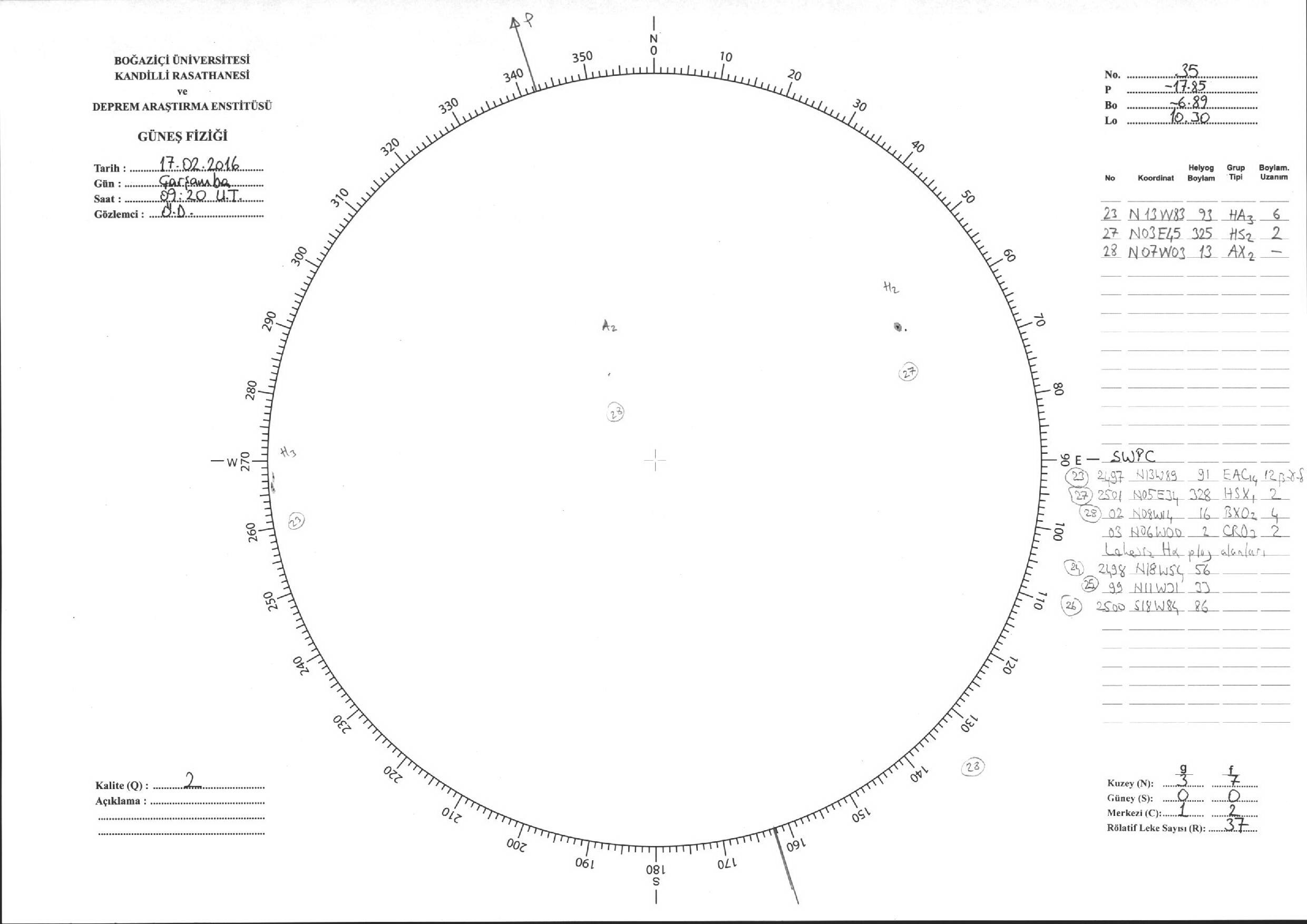 Güneş Lekesi Çizimi - 17.02.2016