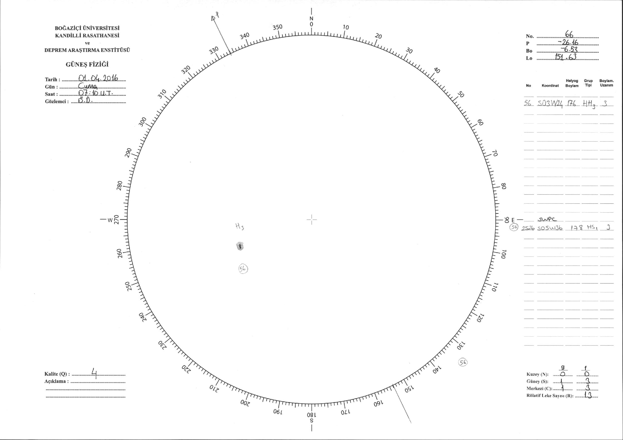 Güneş Lekesi Çizimi - 01.04.2016