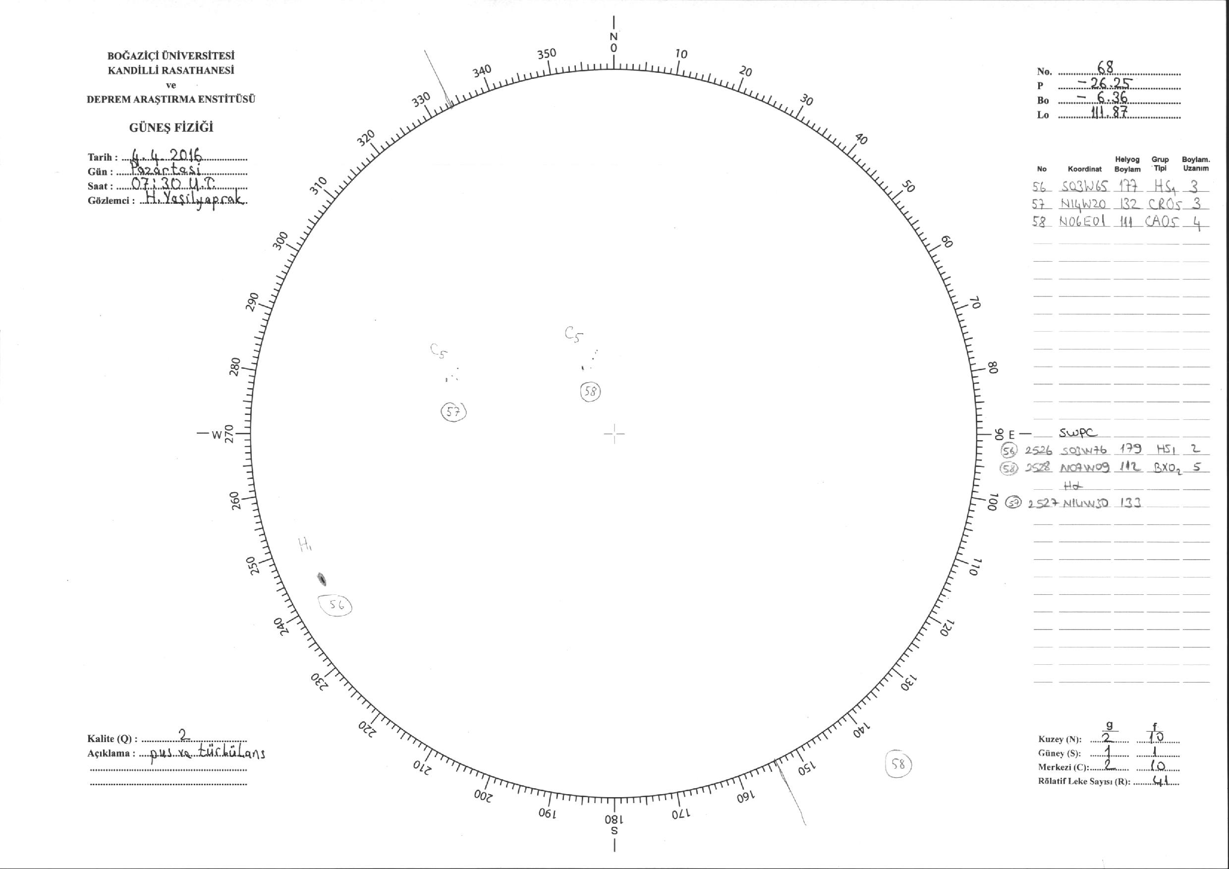 Güneş Lekesi Çizimi - 04.04.2016