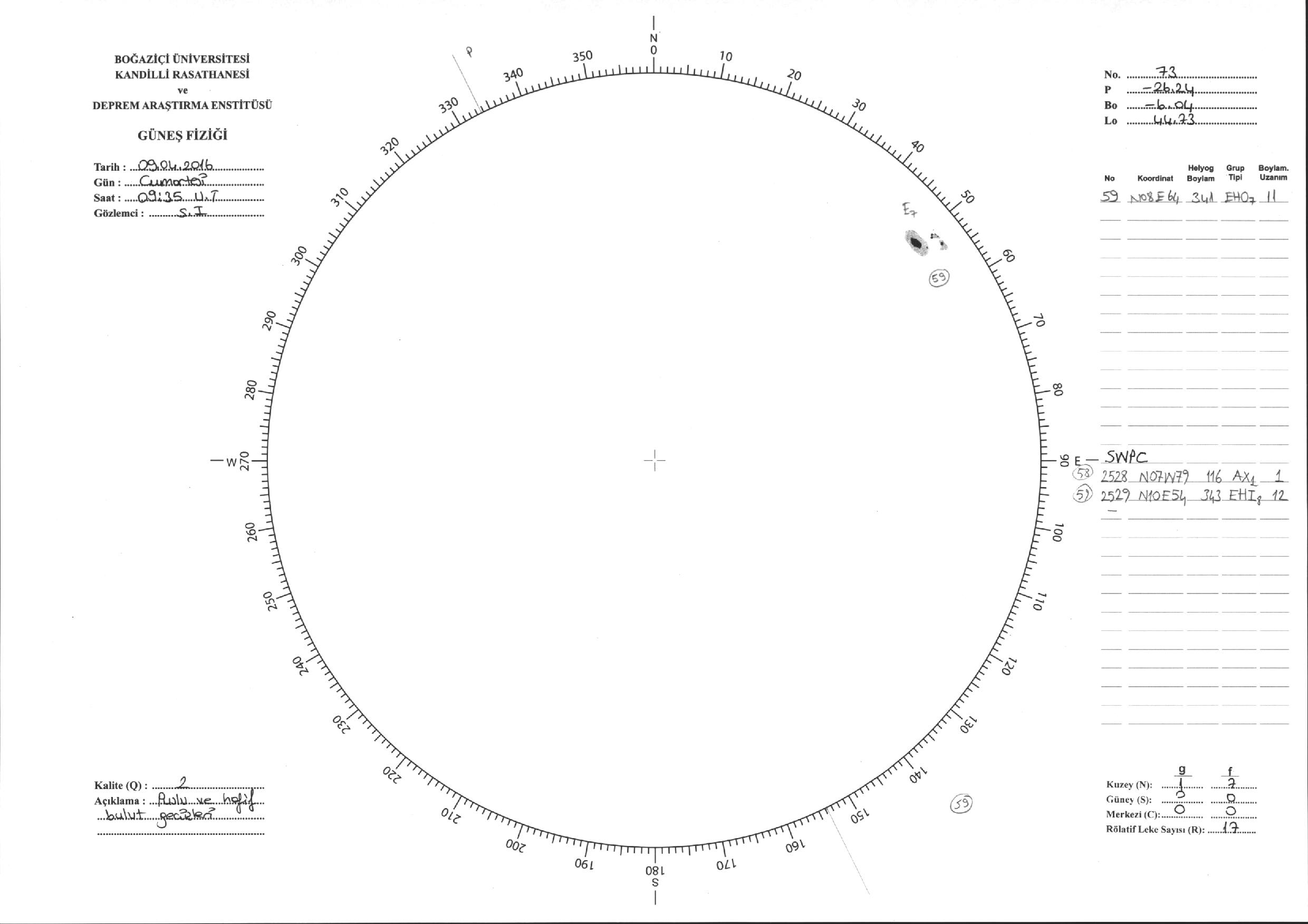 Güneş Lekesi Çizimi - 09.04.2016