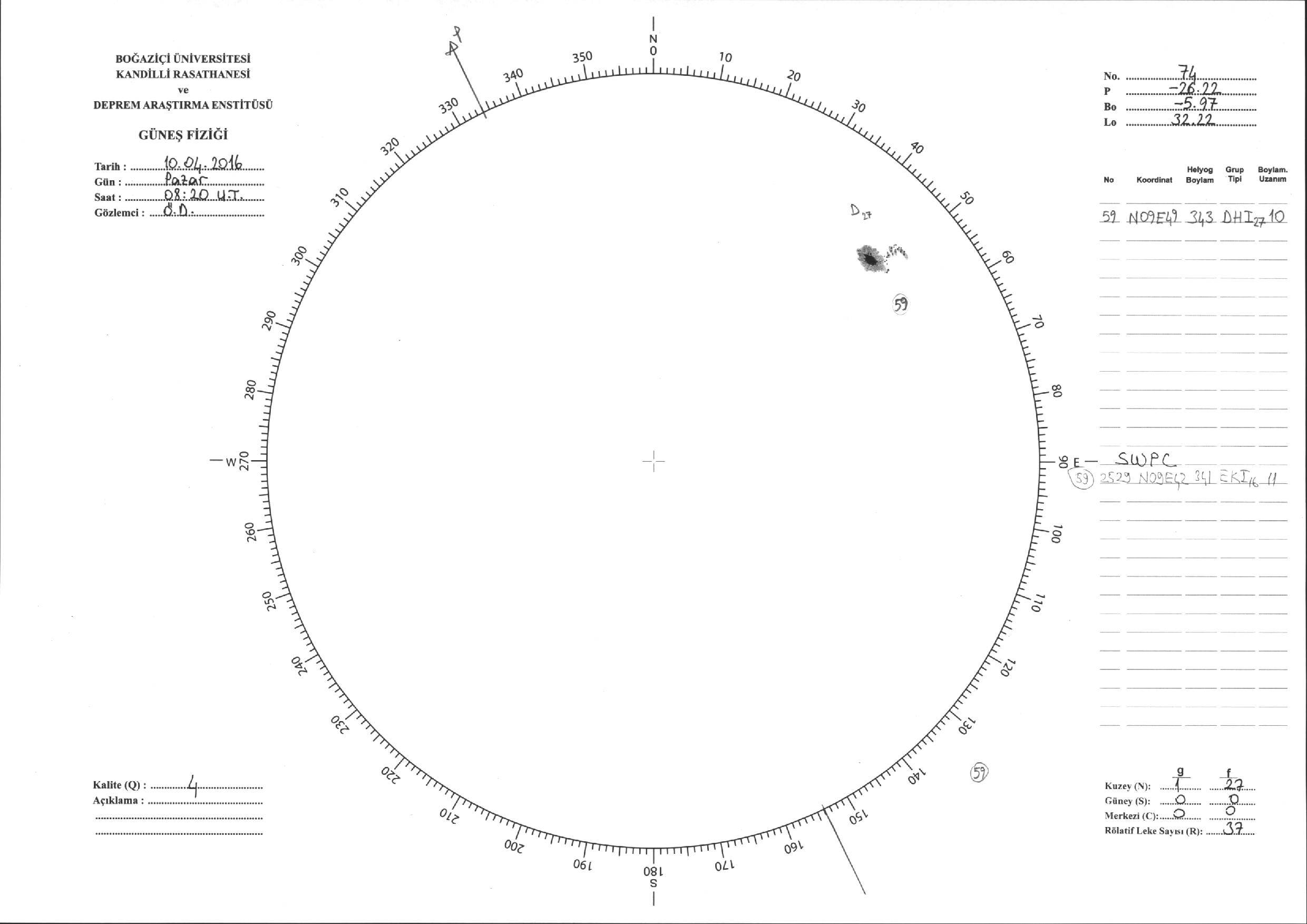 Güneş Lekesi Çizimi - 10.04.2016