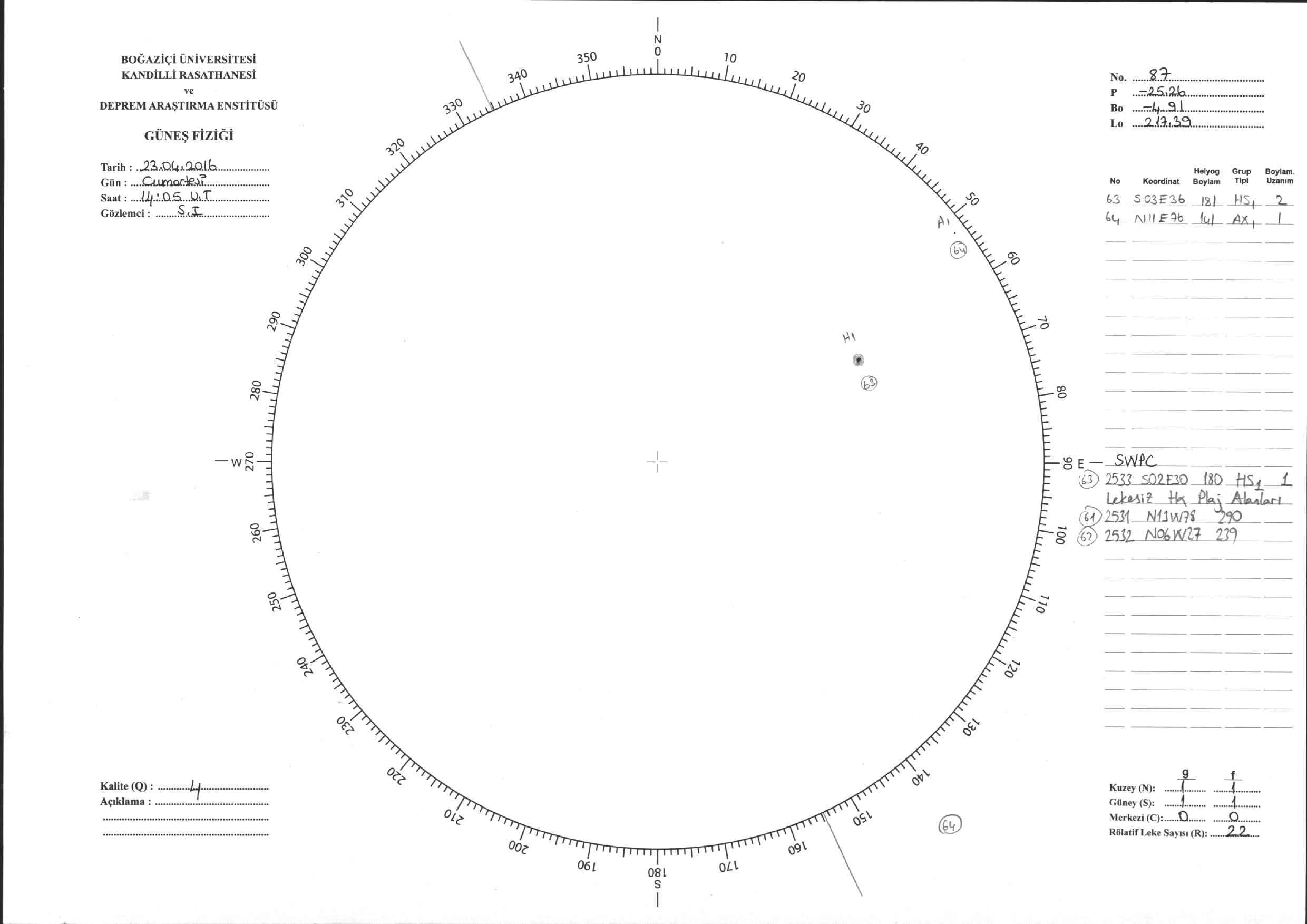 Güneş Lekesi Çizimi - 23.04.2016